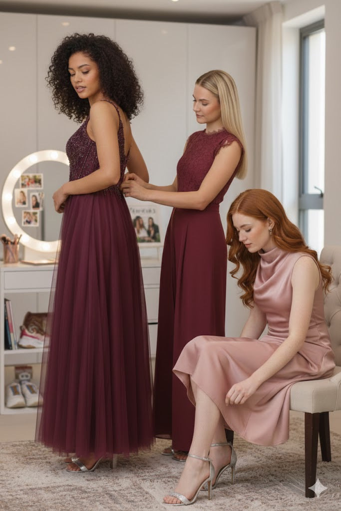 Ihr wollt euch an eurem Tag mal ganz besonders fühlen? Wunderschöne Kleider und Jumpsuites in verschiedenen längen erwarten euch.