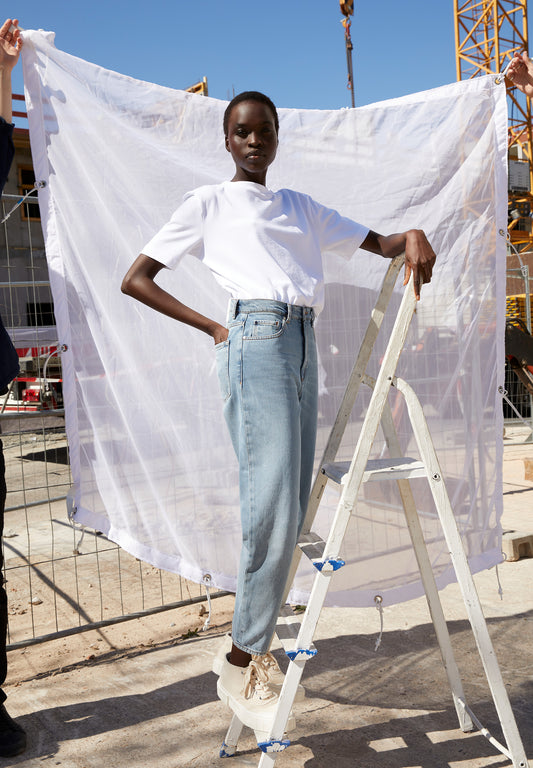 ALINUNAA STONEY Kleider Web Allover, oatmilk