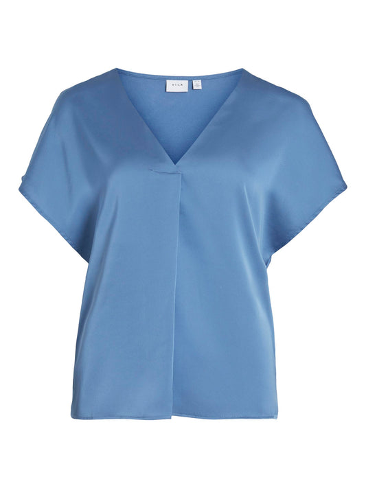 VIELLETTE V-NECK S/S SATIN TOP - NOOS
