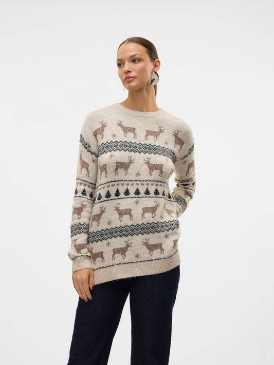 AusverkauftVMDEERS LS O-NECK H/L LONG PULL. XMAS
