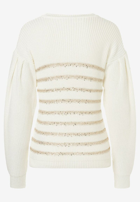 Pullover mit Paillettenstreifen ecru Herbst-Kollektion