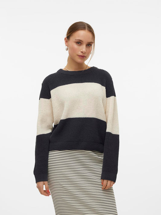 FREJIAAS STRIPES Strick Pullover Streifen, oatmilk-black