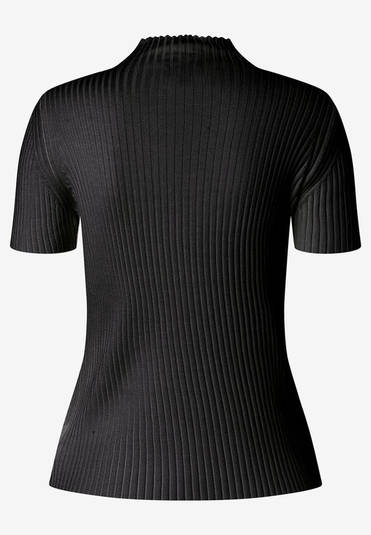 Rippstrick-Pullover Kurzarm schwarz