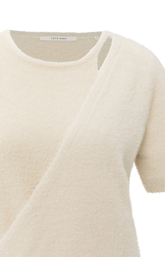 Fluffy cardigan overlaping ss, CHALK WHITE