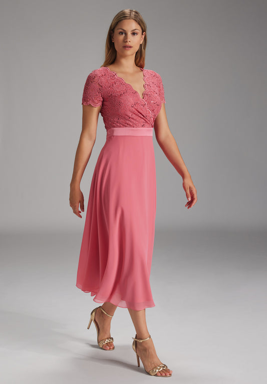 Chiffonkleid mit Rundhalsausschnitt und Spitzenstickerei