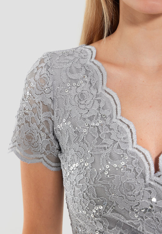 Chiffonkleid mit Spitzenstickerei und feinen Zierperlen