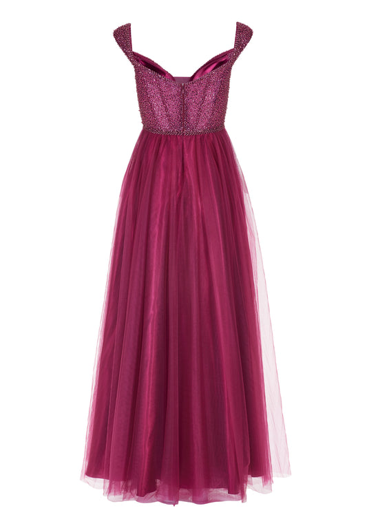 Ausgestelltes Tüllkleid mit Carmen-Ausschnitt