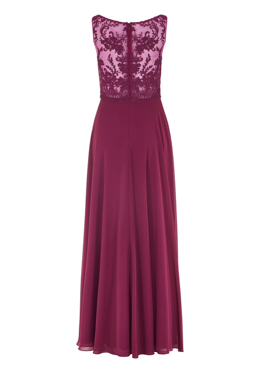 Chiffonkleid mit Spitzenstickerei und feinen Zierperlen