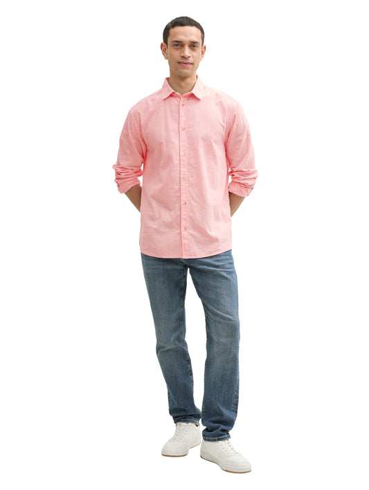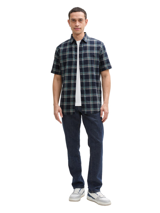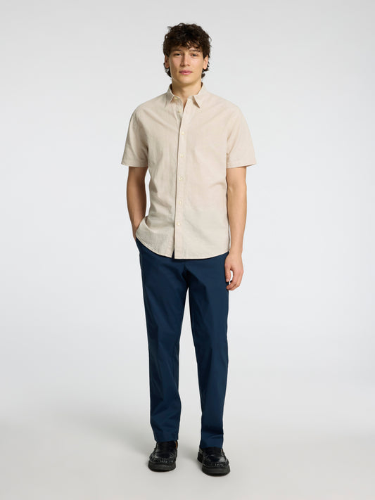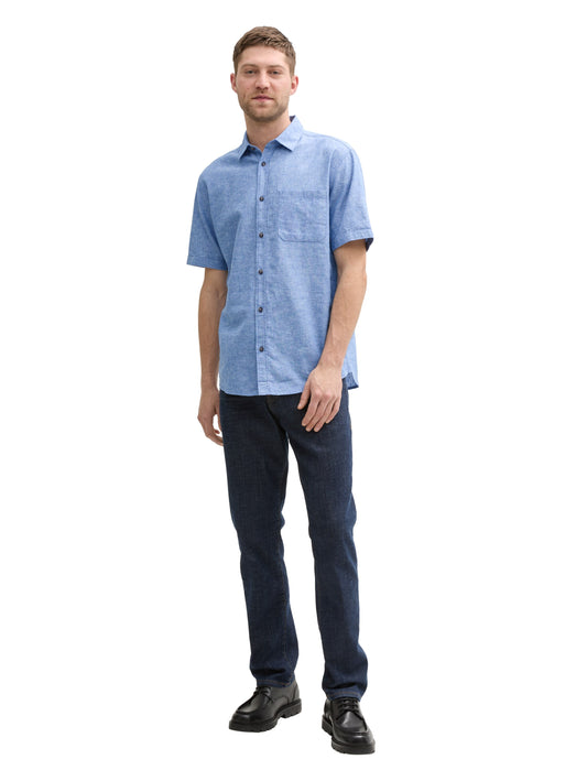 Regular Fit Kurzarmhemd mit Leinenanteil