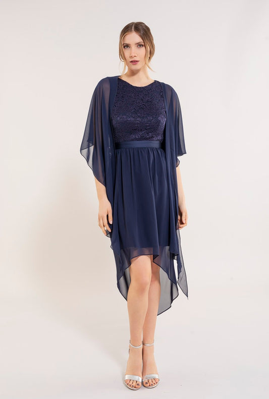 Abendkleid aus Chiffon mit transparentem Spitzenoberteil
