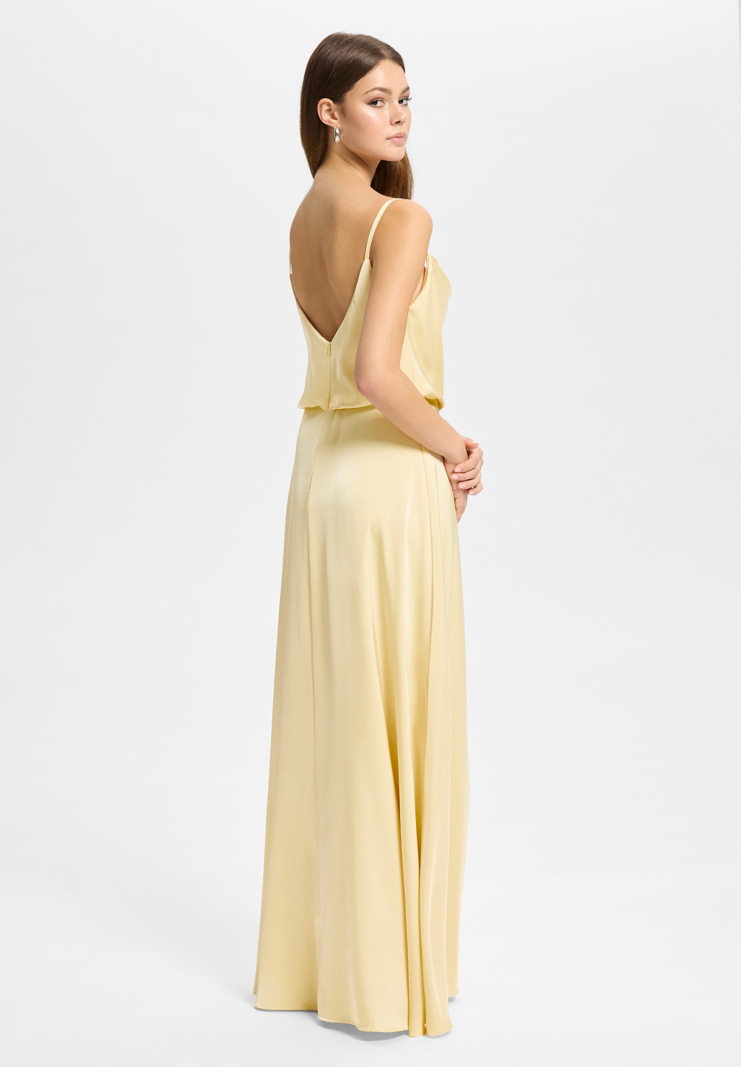 Abendkleid aus Satin mit angedeutetem Wasserfallausschnitt