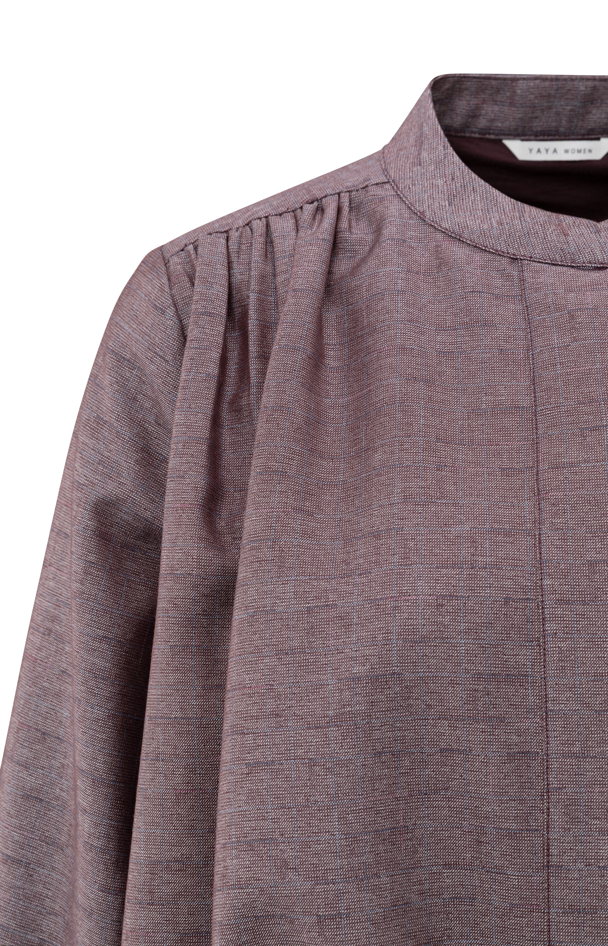 Diese stylishe Blusenjacke hat eine ballonförmige Silhouette mit Raffung an Saum und Bündchen. Sie besteht aus weichem, strukturiertem Stoff, ist in entspannter Passform geschnitten und besticht durch dezente Plisseefalten an den Schultern, die ihr eine feminine Note verleihen. Der verdeckte Knopfverschluss und der Stehkragen runden den minimalistischen und gleichzeitig eleganten Look ab.