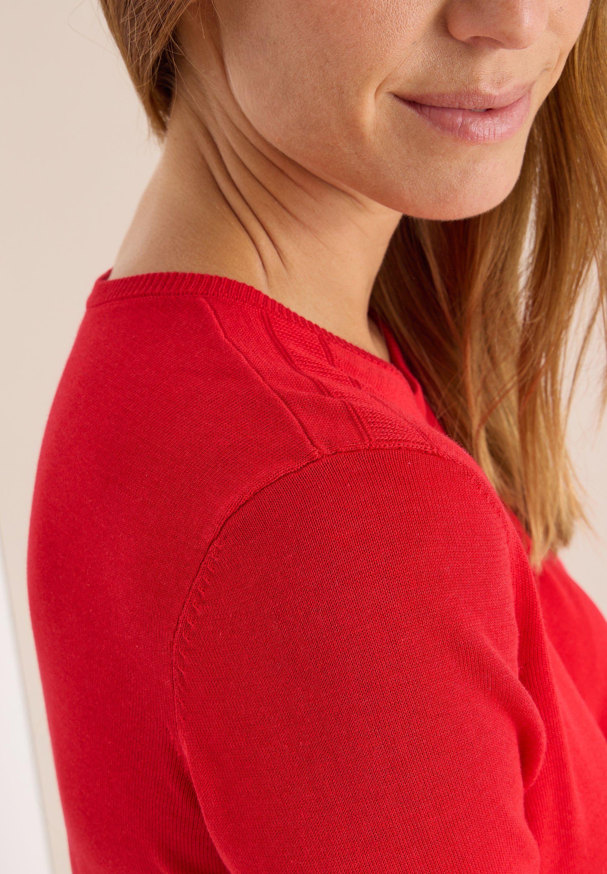 Der Basic Strickpullover von CECIL für Damen punktet mit klassischem Rundhalsausschnitt und einem feinen Detail an der Schulter. Die angenehme Strickqualität sorgt für hohen Tragekomfort im Alltag. Ein unkompliziertes Lieblingsstück für vielseitige Stylings. Strickpullover Rundhalsausschnitt Langarm Detail an der Schulter Angenehme Strickqualität Material: 60% Baumwolle, 40% Viskose