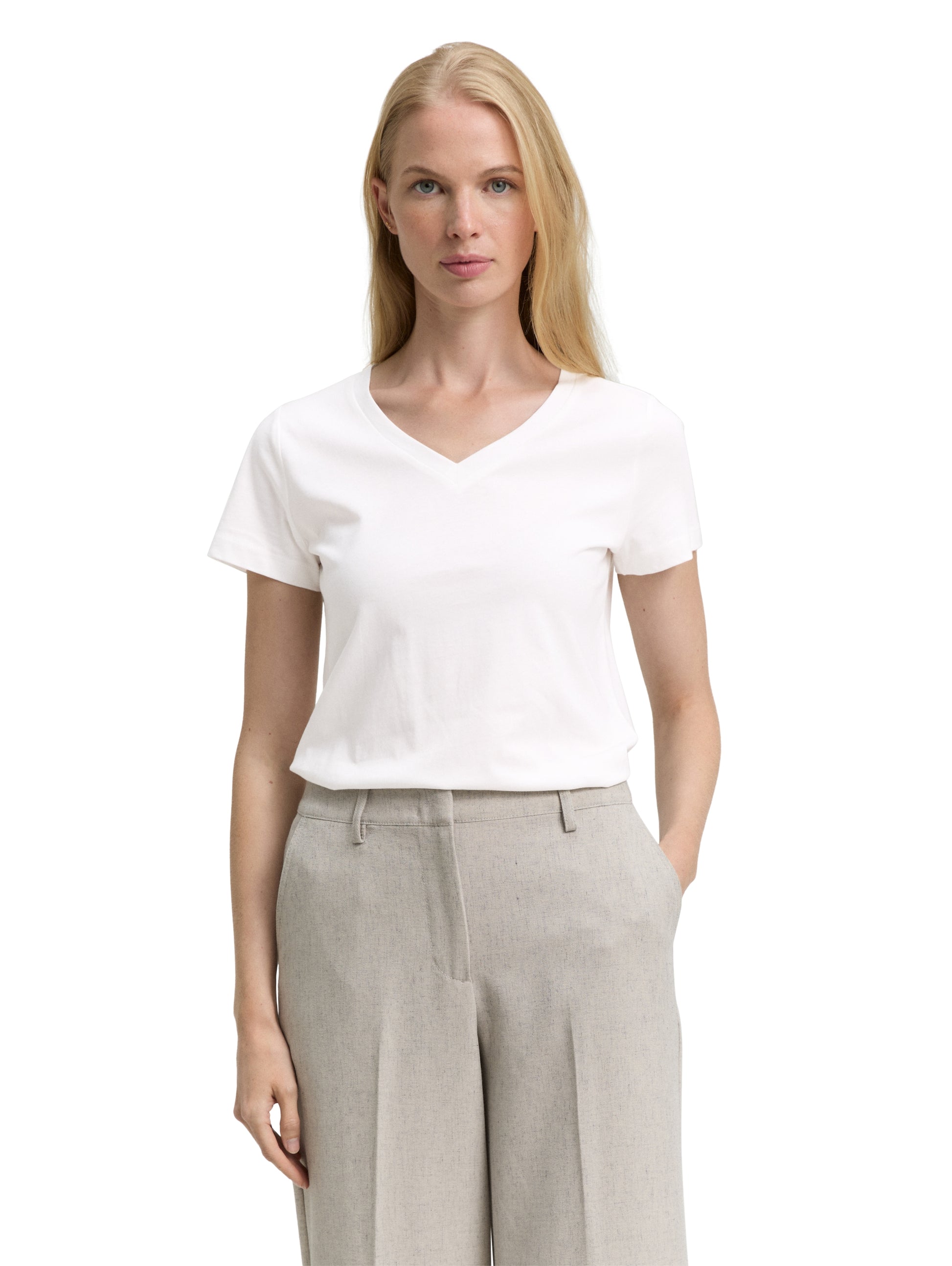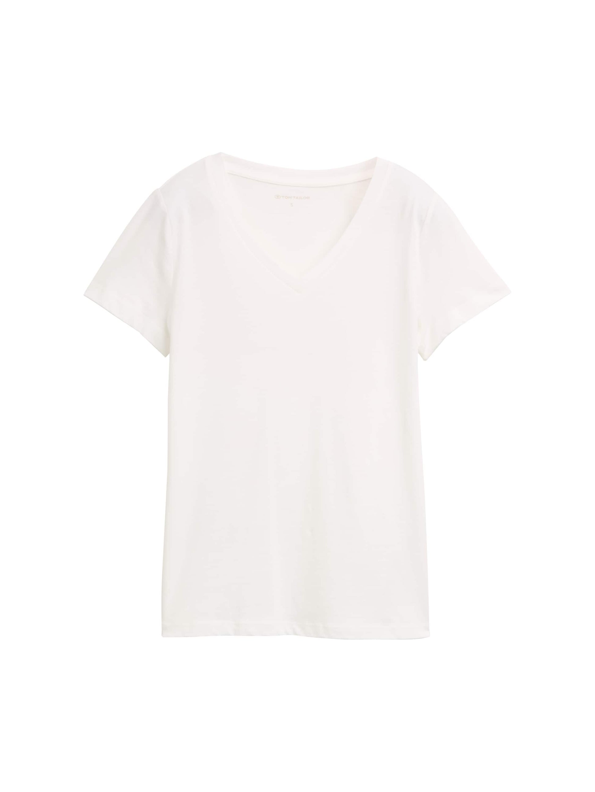 T-Shirt in Unifarben aus einem Single-Jersey-Stoff aus Baumwolle mit V-Ausschnitt