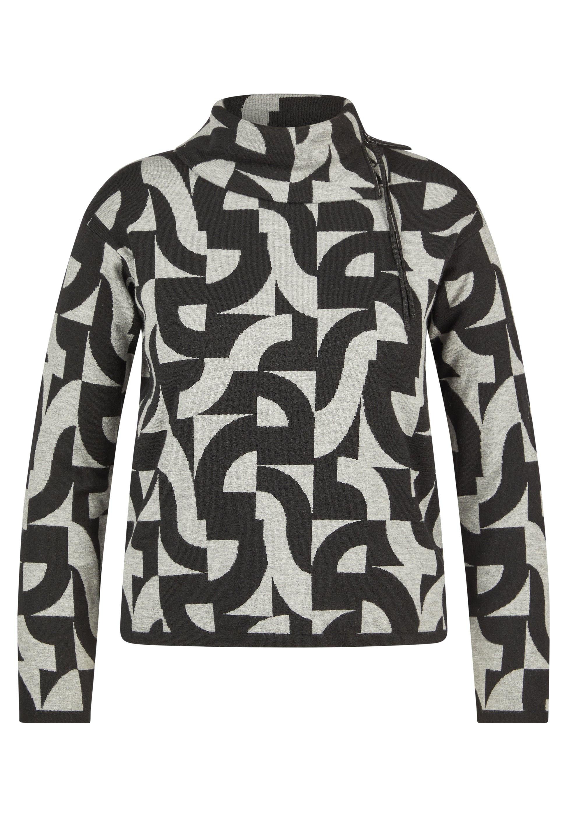 Dieser modische Pullover setzt mit seinem kontrastreichen Allover-Muster ein klares Statement. Der weich strukturierte Materialmix mit hohem Viskoseanteil sorgt für ein angenehmes Tragegefühl und bleibt gleichzeitig formstabil. Der legere Schnitt wird durch den hohen Kragen mit Tunnelzug ergänzt, der für eine sportive Optik sorgt. Gedeckte Farben machen das Modell vielseitig kombinierbar. Tunnelkragen mit Zugband. Weich strukturierte Qualität. Grafisches Allover-Motiv. Lässige Passform mit langem Arm. Formstabiler Viskose-Mix.