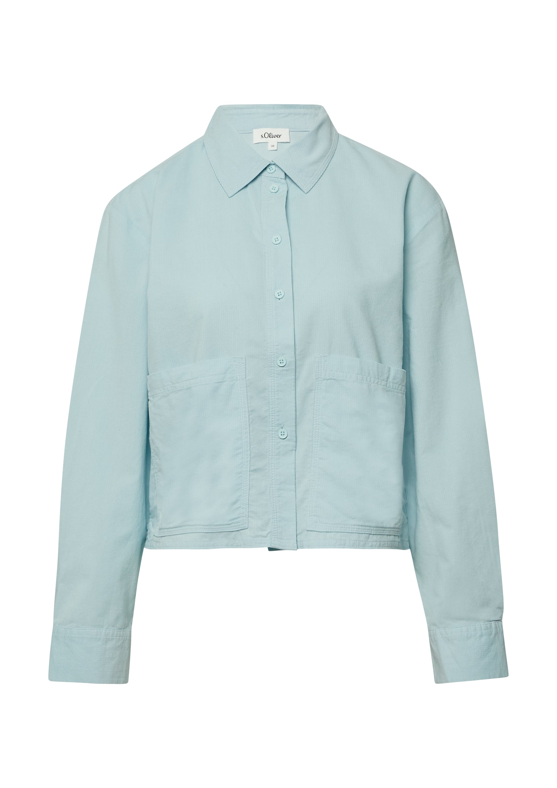 Die verkürzte Feincord-Bluse im Relaxed Fit verzaubert mit fließendem Baumwollmix und lässigen Details. Der klassische Hemdkragen, praktische aufgesetzte Taschen und die überschnittenen Schultern machen sie zum casual-femininen Liebling für entspannte Alltagsmomente.