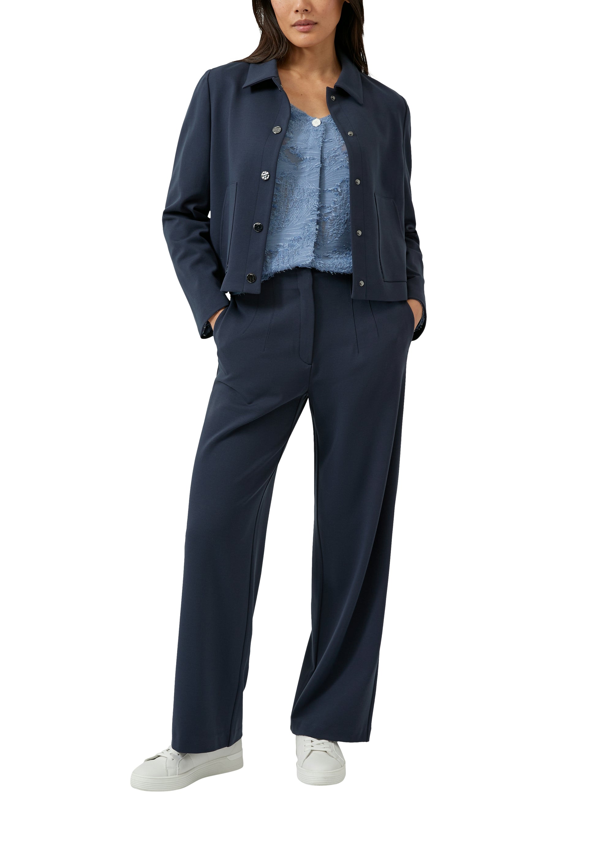 Eleganz mit Charakter: Diese Bluse verbindet einen raffinierten 3D-Effekt mit einer fließenden Falte im Vorderteil – für einen Look, der sofort auffällt. Der V-Ausschnitt und die Langarm-Silhouette verleihen dir eine souveräne Ausstrahlung, während der dezente Knopfverschluss für cleane Linien sorgt. In Regular Fit geschnitten, passt sie perfekt zu Business-Terminen und festlichen Anlässen. Ein Statement-Piece für deinen individuellen Stil.