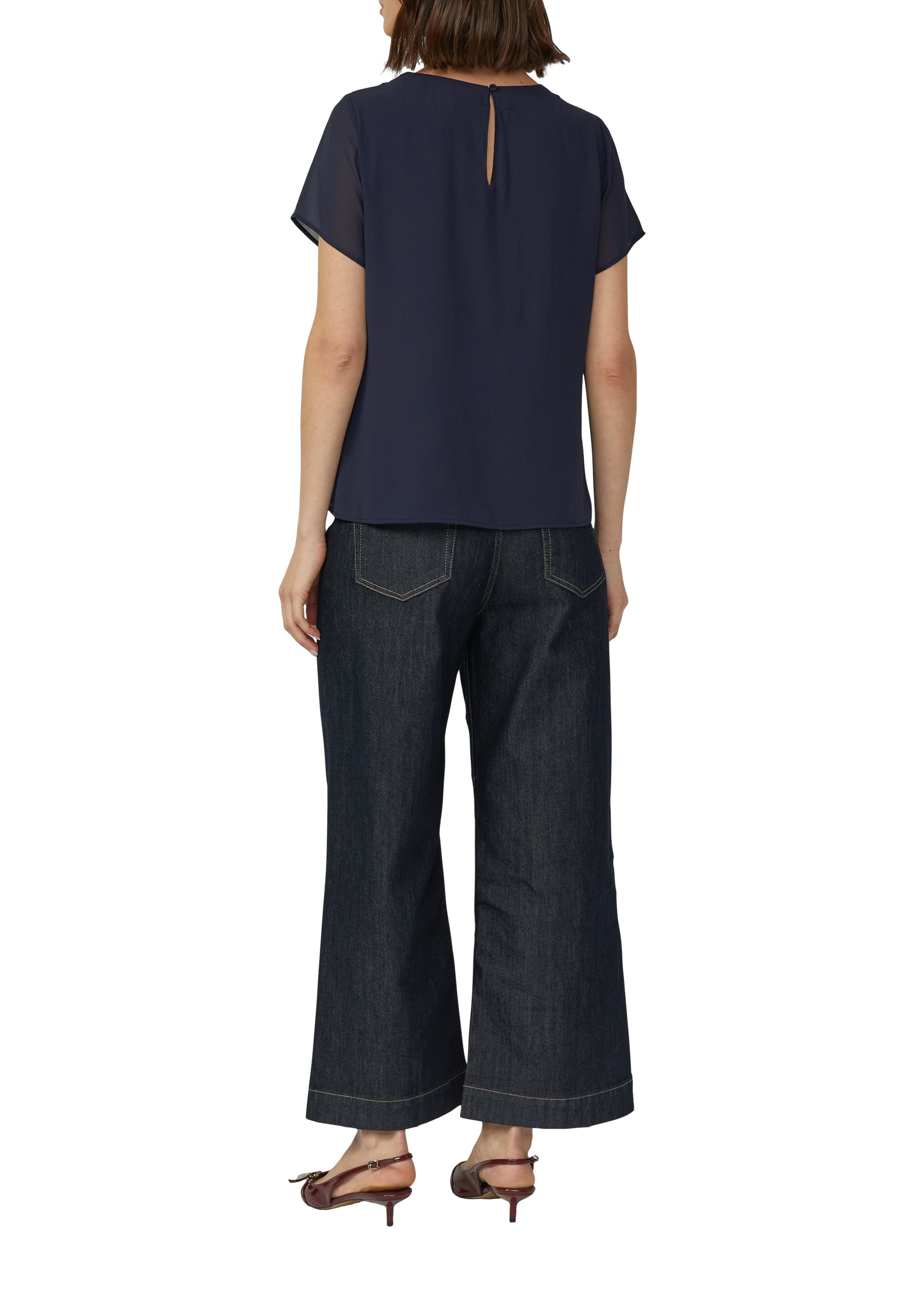 Luftig, elegant, vielseitig – diese Bluse mit Viskose-Futter ist dein perfekter Begleiter für jeden Anlass. Die abgesteppte Raffung verleiht ihr eine raffinierte Note, während der Rundhalsausschnitt mit Schlitz und Knopf für moderne Lässigkeit sorgt. Regular Fit trifft auf zeitlosen Chic: Trage sie im Business-Kontext oder beim Casual-Auftritt und unterstreiche dabei deinen selbstbewussten Stil.