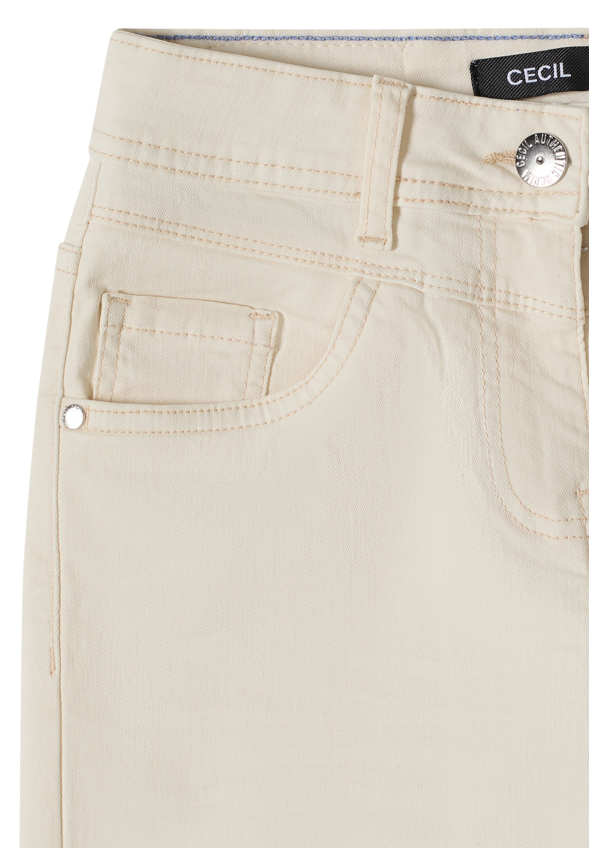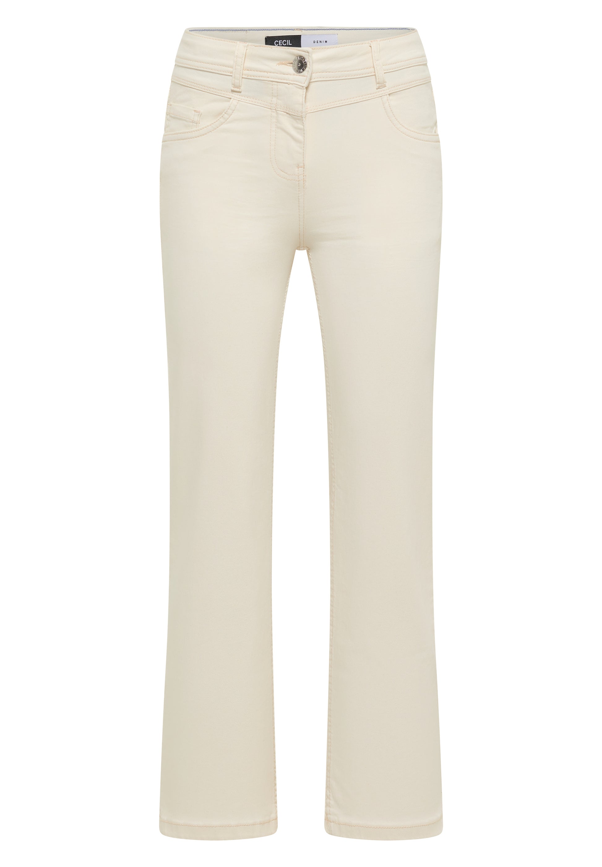 Mit dieser Bootcut Jeans im Style Toronto von CECIL für Damen setzt du auf eine moderne High Waist Silhouette in heller Ecru Waschung – stilvoll und wandelbar. Der Slim Fit kombiniert mit den Bootcut Legs schafft eine ausgewogene Linie, der Baumwollmix mit Stretchanteil garantiert deinen Komfort. Perfekt für vielseitige Looks von casual bis smart‑denim. Denim Hose Slim Fit Bootcut Legs High Waist Modern und vielseitig Material: 78% Baumwolle, 21% Polyester, 1% Elasthan
