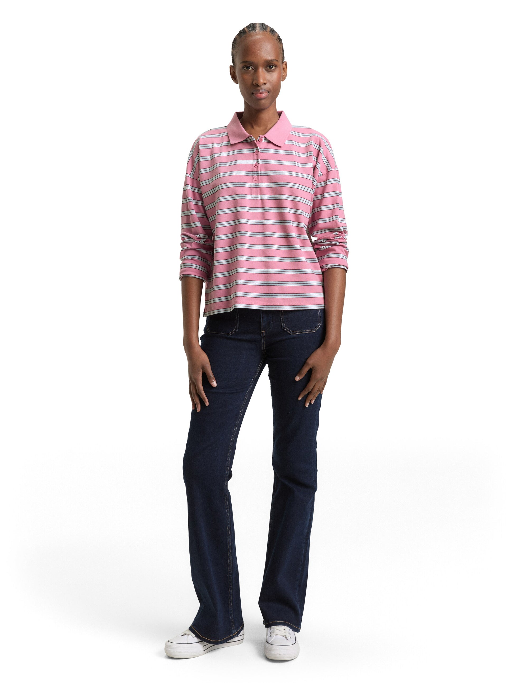 Boxy Fit Langarm Poloshirt mit Streifenmuster