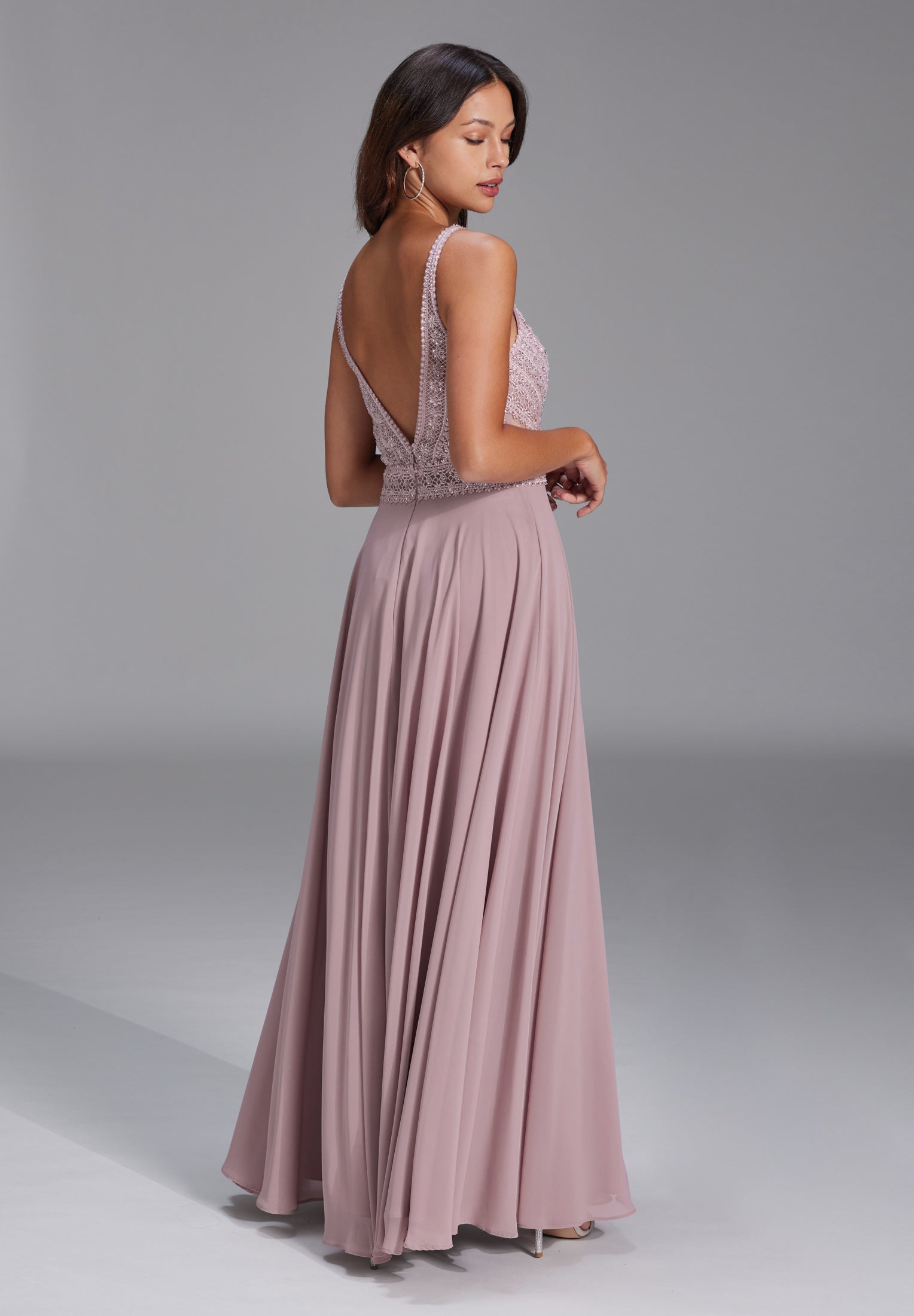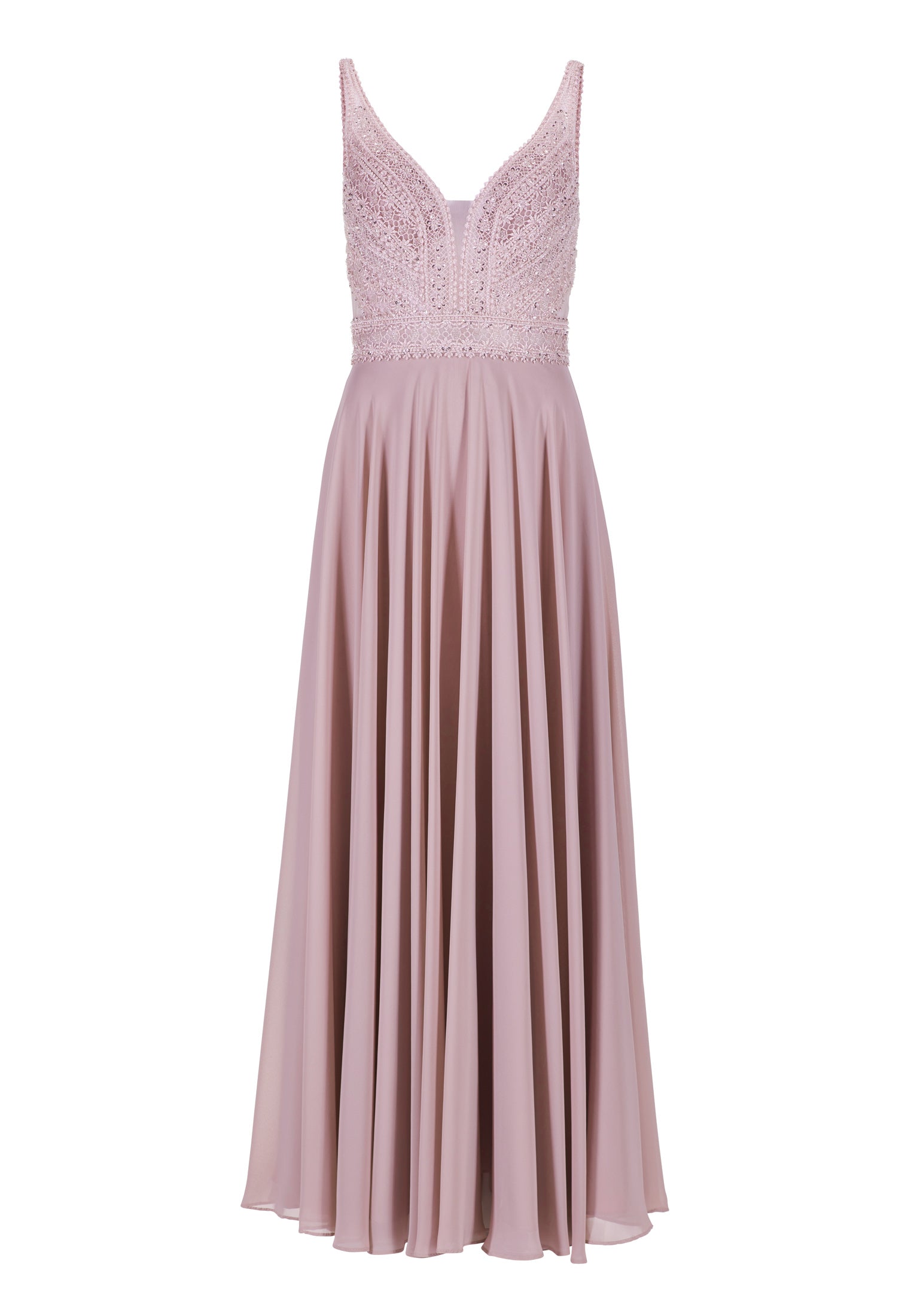 Chiffonkleid mit Spitzenstickerei und feinen Zierperlen