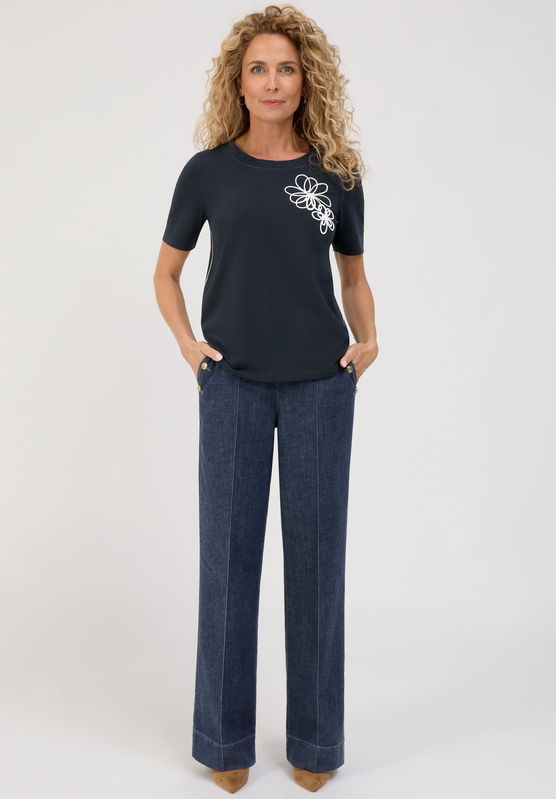 Lässig und vielseitig zeigt sich unser Kurzarmshirt Dinia mit edlem Kordel-Stick und entspannter Passform. Die hochwertige Baumwolle mit Elasthan sorgt für angenehmen Tragekomfort und Formbeständigkeit. Der Rundhalsausschnitt mit feiner Blende, kontrastierende Ziernähte an der Seitennaht und die kurzen Ärmel unterstreichen den modernen Look. Ob leger zu Jeans oder stilvoll mit Blazer - Dinia ist ein echtes Allround-Talent für jeden Anlass.