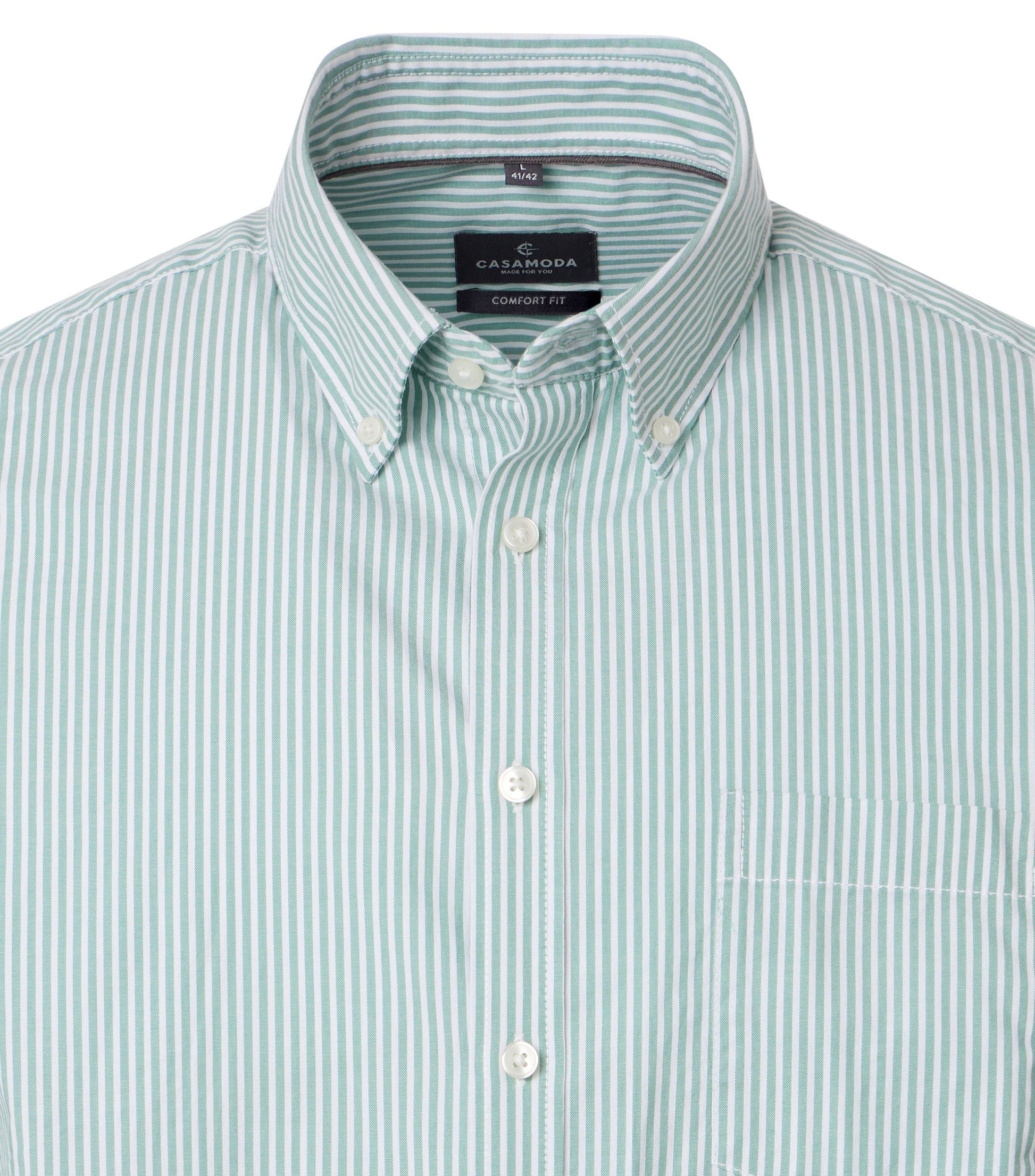 Das Freizeithemd überzeugt durch ein sportlich-körniges Oxford-Gewebe aus reiner Baumwolle, das für Strapazierfähigkeit und Tragekomfort steht. Durch die bequeme Comfort Fit Passform genießen Sie maximale Bewegungsfreiheit, während das modische Streifenmuster einen stilvollen Akzent setzt. Der Button-Down-Kragen sorgt für einen gepflegten Look und die praktische Brusttasche bietet Platz für kleine Essentials. Dieses Hemd eignet sich ideal für Freizeitaktivitäten, Casual-Treffen, Spaziergänge oder Familienfeiern und lässt sich flexibel mit einem T-Shirt, einer Bermuda, einer Jeans oder einem Pullover kombinieren.