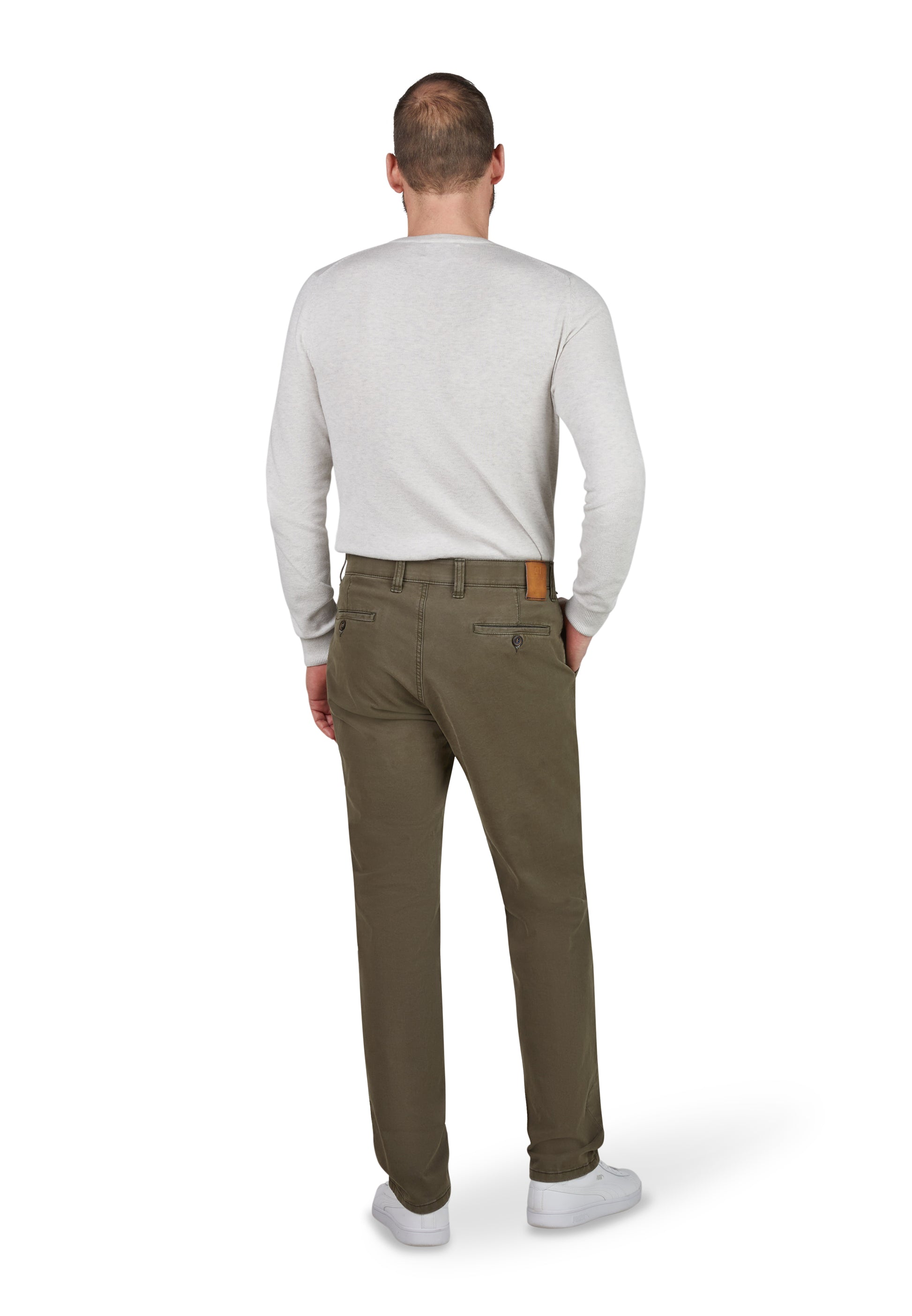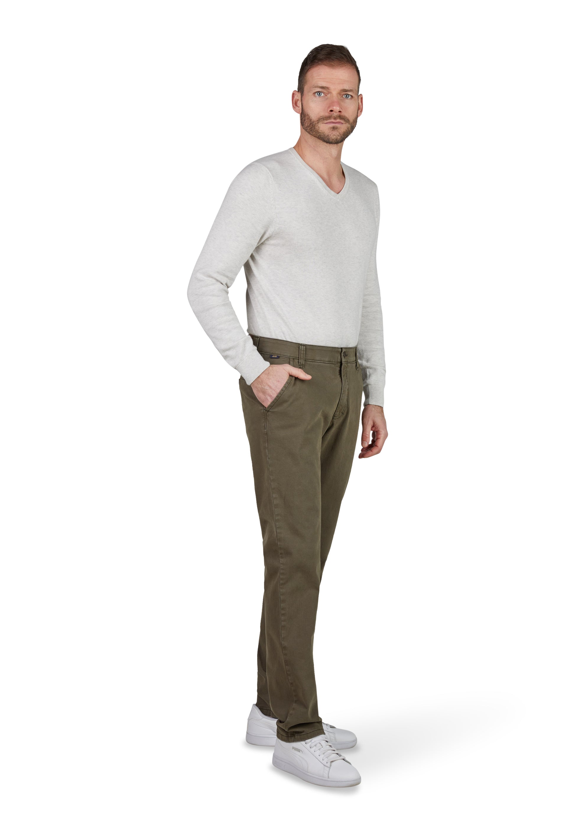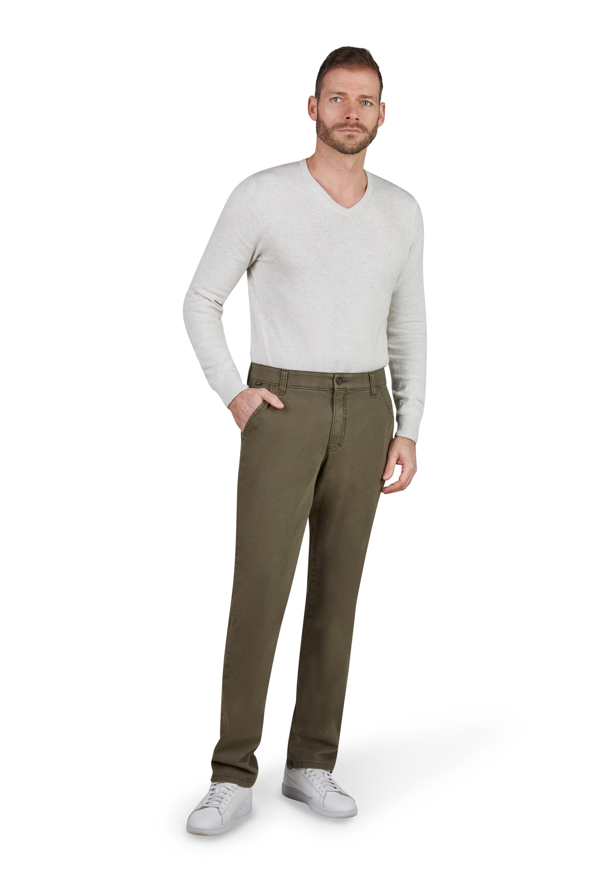 Bequeme Flat Front-Hose mit elastischem Komfortbund und Hemdstopper. Die Münztasche bringt einen Hauch Sportivität in den Look. Gefertigt aus einer bi-elastischen Baumwoll-Qualität mit softem Griff. Gewicht: 405 g/lfm. Das Modell bietet eine normale Leibhöhe und wegen der schmaleren Fußweite einen schlankeren Beinverlauf.