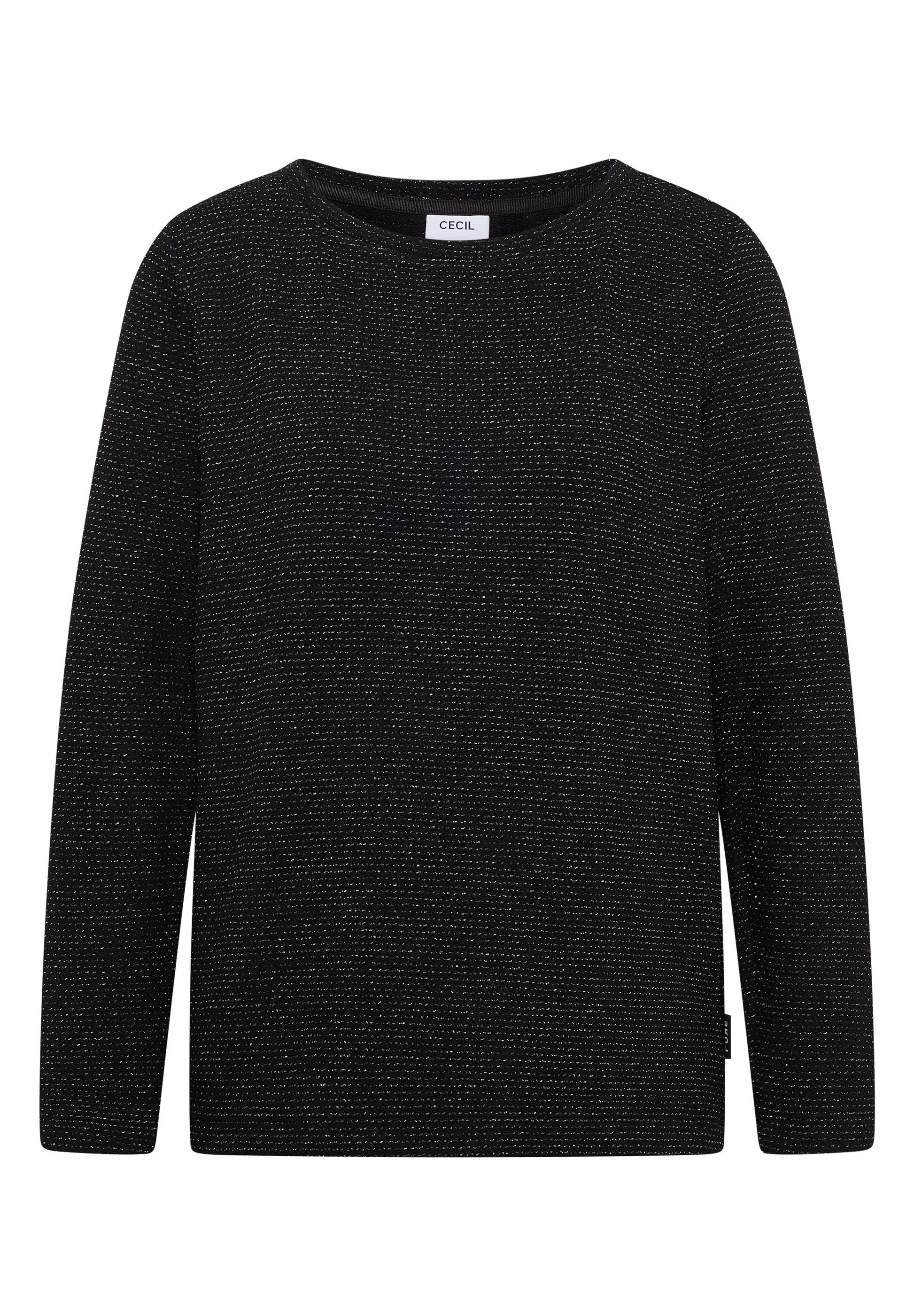 Das Strukturshirt von CECIL für Damen begeistert mit feinem Muster und dezenten Glitzerdetails. Der U-Boot-Ausschnitt und die langen Ärmel verleihen dem Look eine feminine Note. Ideal für stilvolle Alltagsoutfits mit einem Hauch Glamour. Langarmshirt Feines Strukturmuster Glitzerdetails U-Boot-Ausschnitt Langarm Material: 77% Viskose, 18% Polyester, 3% Metallfasern, 2% Elasthan