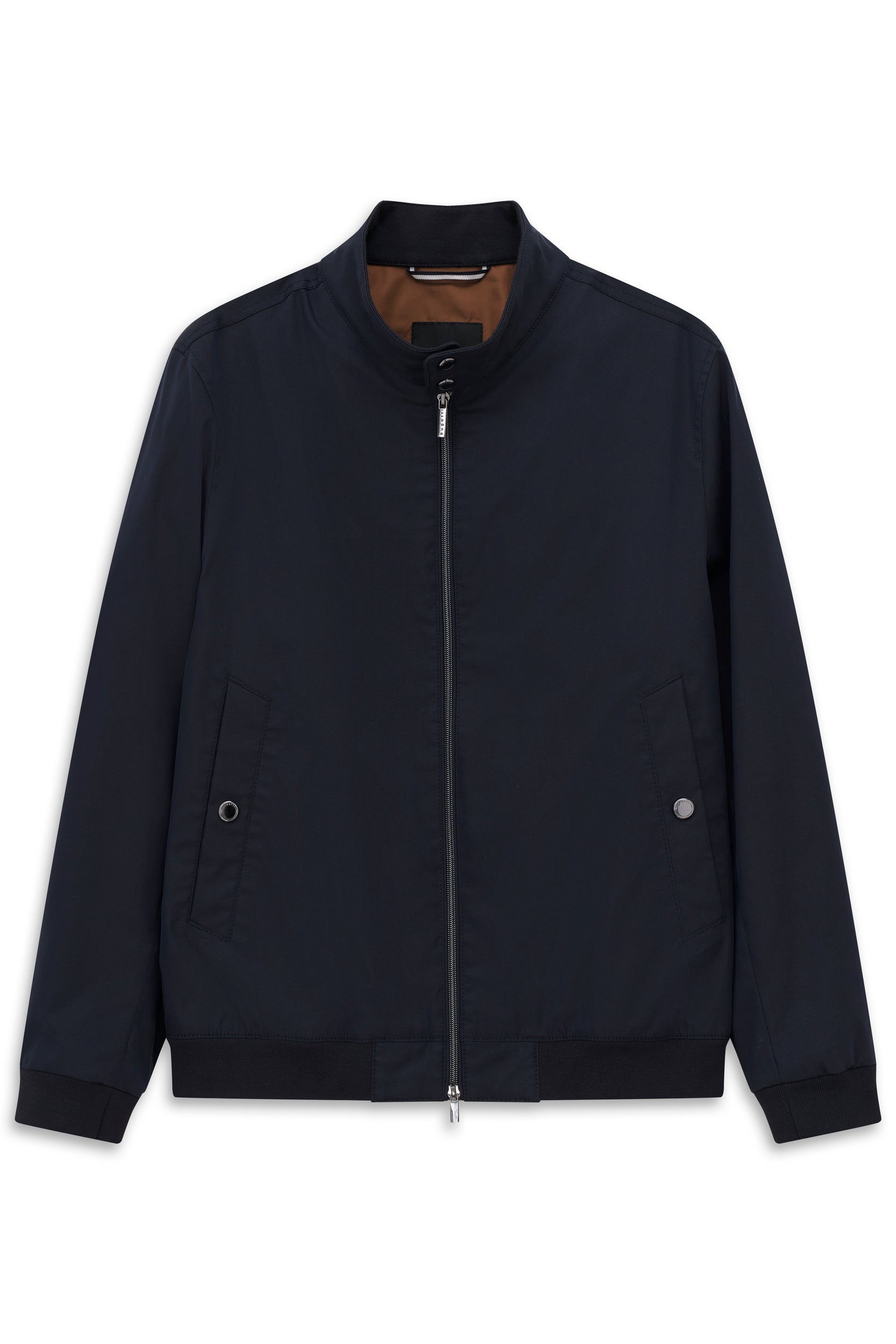 Baumwoll-Blouson mit Stehkragen und schrägen Leistentaschen mit Druckern. Strick-Einsatz im Innenkragen sowie rundum an Saum- und Ärmelabschluss. Dezente Vollfütterung. Der Artikel aus einer Baumwollmischung überzeugt mit seinem leichten Stretch und seiner Struktur.