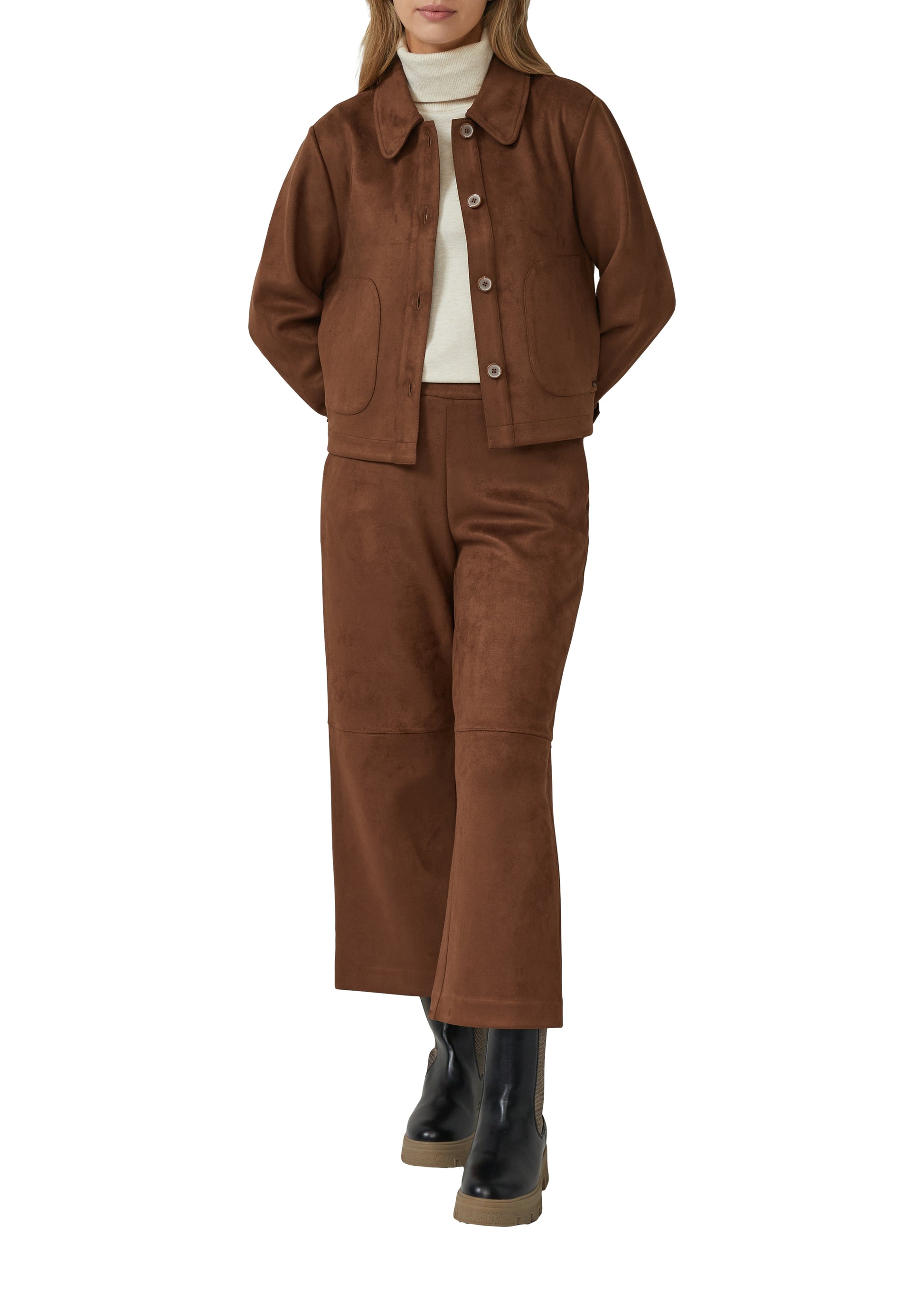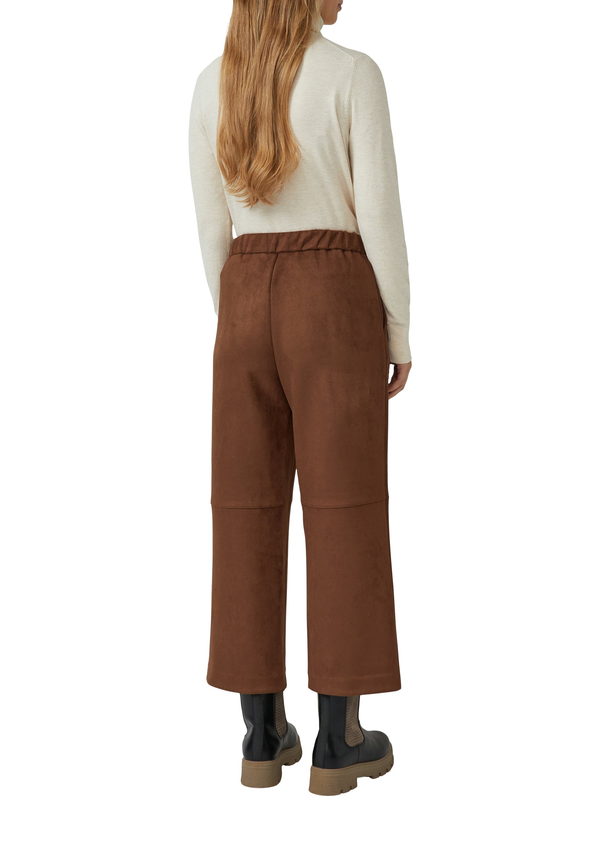 Stylische Culotte mit Velourleder-Look und hohem Bund für einen lässigen Auftritt. Der elastische Bund und die Eingrifftaschen sorgen für Komfort im Alltag. Ein vielseitiges Piece, das deine Outfits aufwertet und sich mühelos kombinieren lässt.