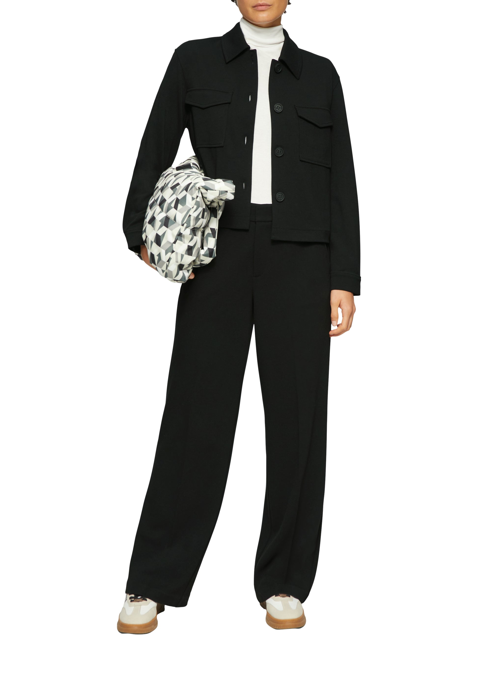 Diese elegante Wide-Leg-Hose aus hochwertigem Struktur-Jersey vereint Komfort und Style. Mit hohem Bund, klassischen Bügelfalten und praktischen Eingrifftaschen passt sie perfekt zu deinem Business-Look oder entspannten Freizeitoutfit.