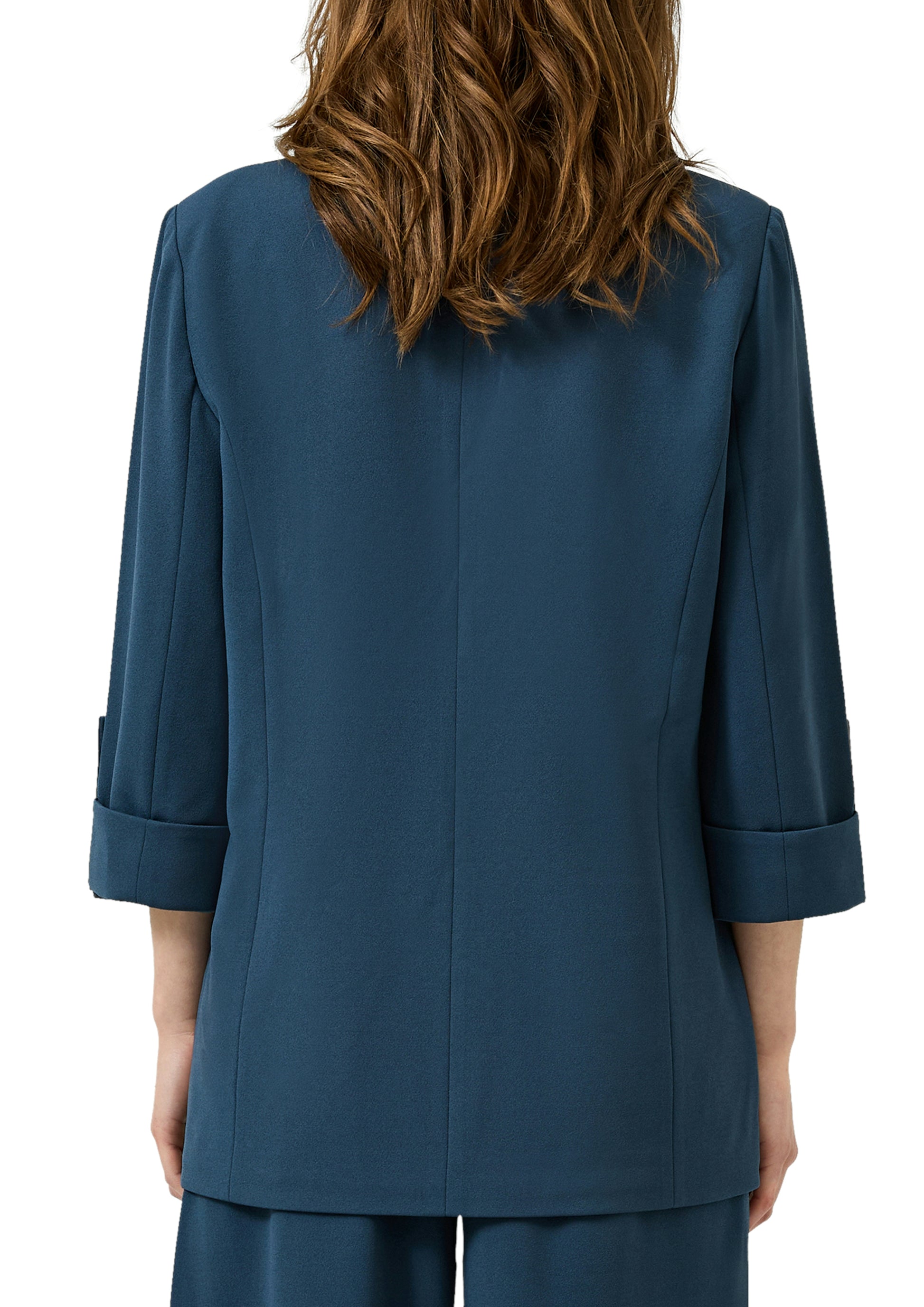 Dieser Indoor-Blazer mit Reverskragen bringt entspannten Style in deinen Alltag und macht auch bei Partys eine gute Figur. Der fließende Interlockjersey mit elastischen Eigenschaften sorgt für maximalen Komfort, während die Turn-ups am 3/4-Ärmel dem Regular Fit eine lässige Note geben. Paspeltaschen und Knopfverschluss runden den Look ab.