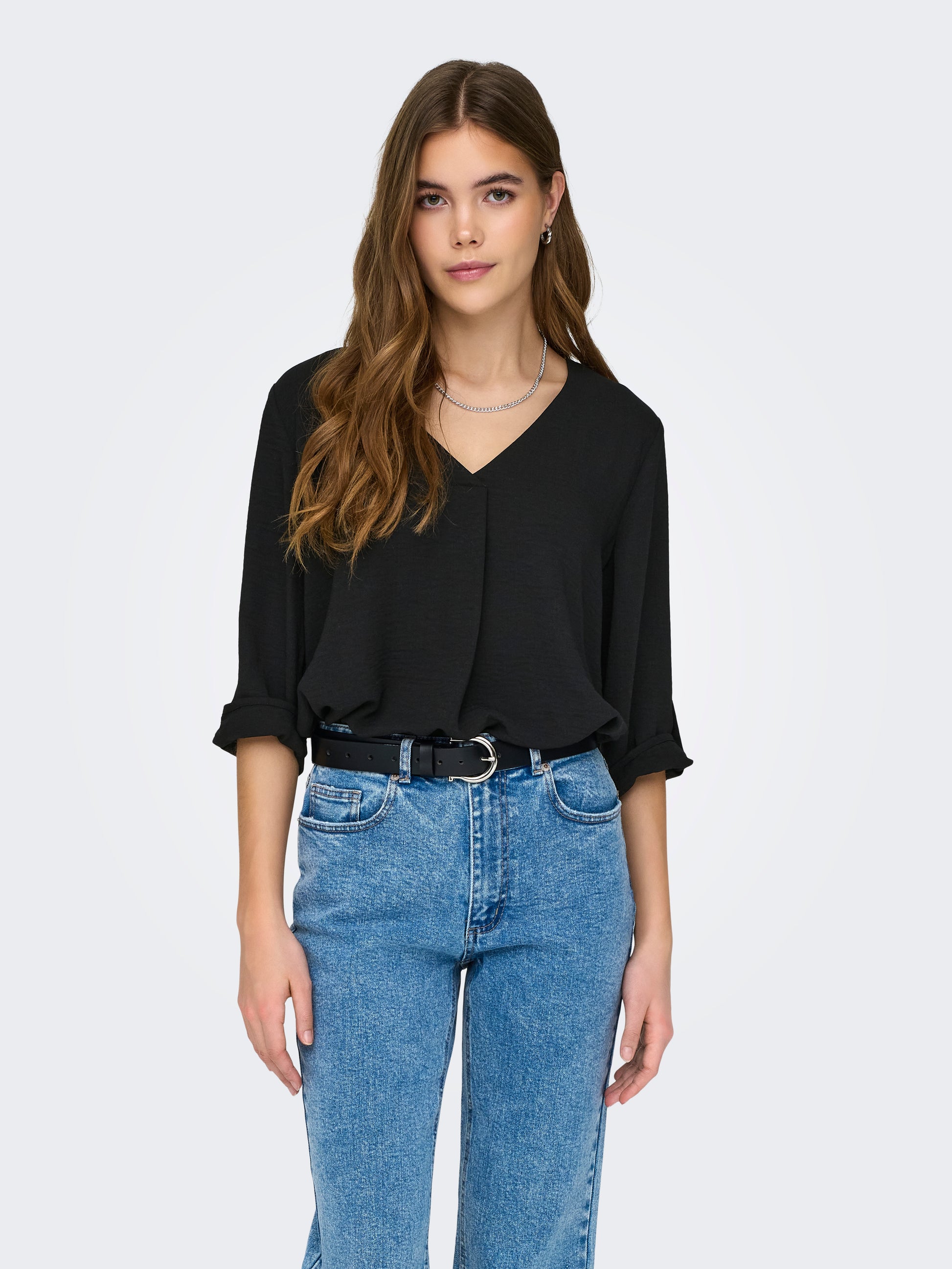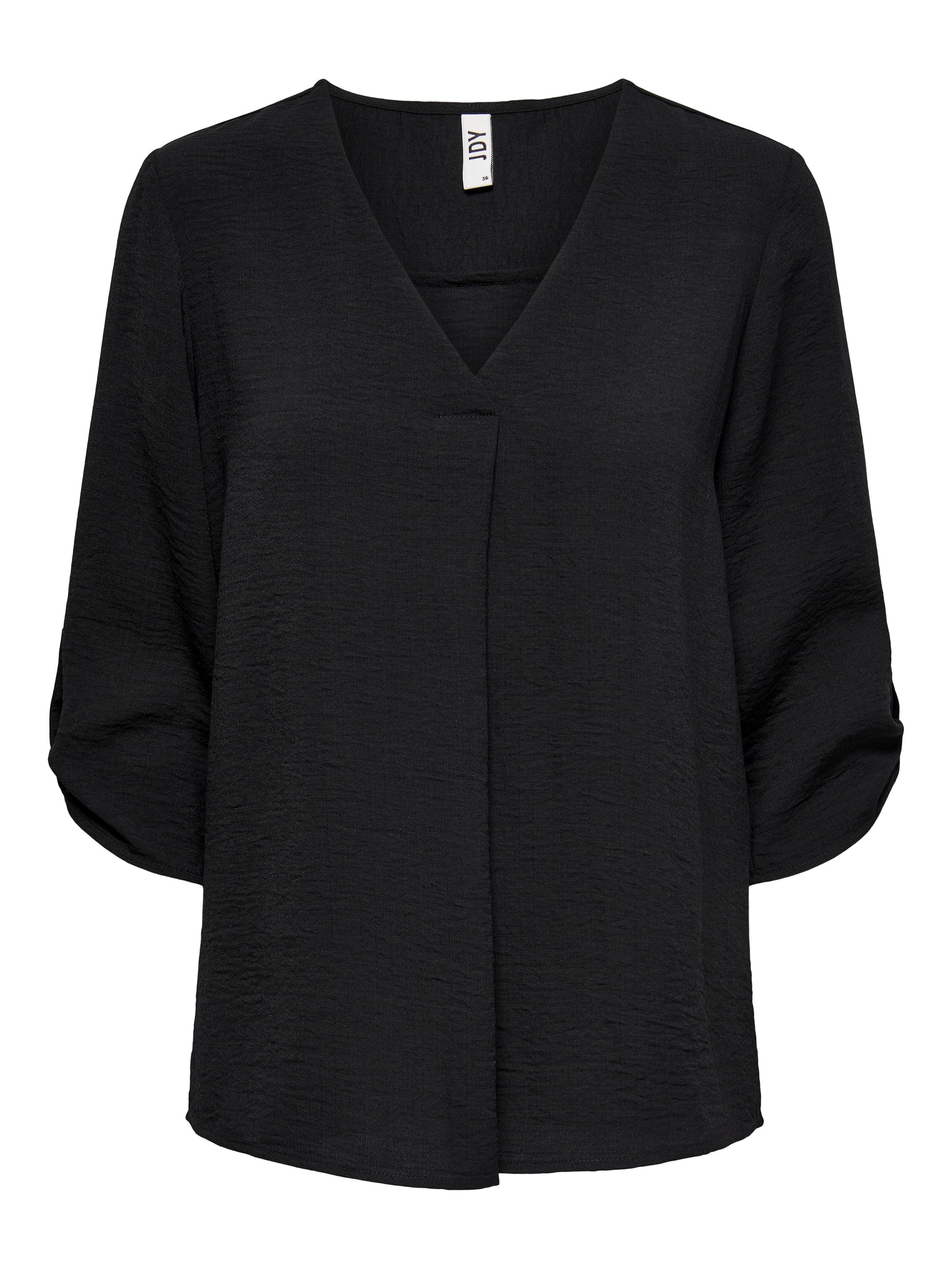 Stocke deinen Vorrat an stylishen Basics wie T-Shirts und Tops auf, die sich problemlos mit den Sachen in deinem Kleiderschrank kombinieren lassen.Gewebte Stoffe werden durch das Verweben von zwei oder mehr Garnen hergestellt und erhalten so ein zeitloses Aussehen.JDY ist ein internationales Modelabel, das modebewussten Frauen eine vollständige Palette an bezahlbaren und trendigen Produkten bietet. - Produkttyp : Top - Hals : V-Ausschnitt - Ärmel : 3/4 Arm - Ärmel : Voluminöser Armschnitt - Manschetten : Umgeschlagene Ärmelbündchen - Passform : Locker geschnitten