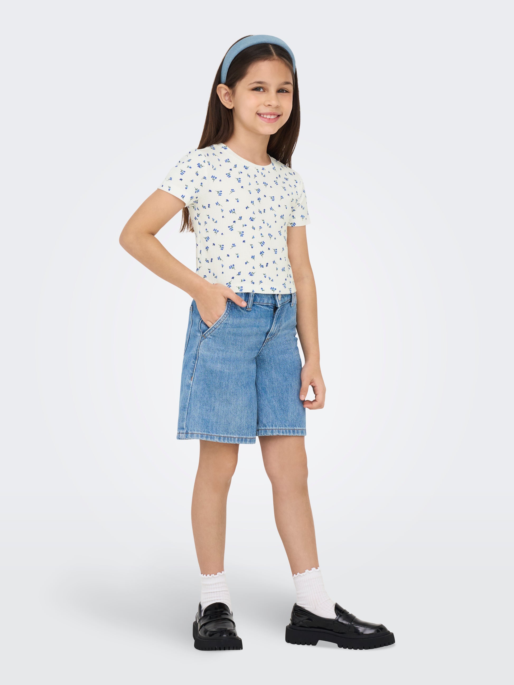 Aktualisiere die Garderobe mit einem coolen T-Shirt von ONLY GIRLS - das perfekte Oberteil für alltägliche Abenteuer! Dieser Stil verleiht ihm einen frischen und femininen Touch, ideal für Schule und Freizeit. Kombinieren Sie es mit Jeans und Turnschuhen für einen entspannten und coolen Look, der ihre Persönlichkeit ausstrahlt.Baumwolle besteht aus natürlichen Fasern, die ein weiches, atmungsaktives Material bilden.ONLY GIRLS ist für Mädchen, die es lieben, ihren Stil mit Selbstvertrauen auszudrücken. Die Kollektionen bieten die perfekte Mischung aus trendigem Denim, femininen Details und Rock'n'Roll-inspirierten Styles. Unsere Kleidung ist so konzipiert, dass sie jungen Modeliebhabern die Möglichkeit gibt, sich sowohl mit Alltagslooks als auch mit festlichen Outfits abzuheben. - Produkttyp : T-shirt - Hals : Rundhals - Ärmel : Kurzarm - Print : Der Druck wiederholt sich auf der gesamten Oberfläche des Produkts - Passform : Enger Schnitt - Achtung : WARNUNG! Von Feuer fernhalten.
