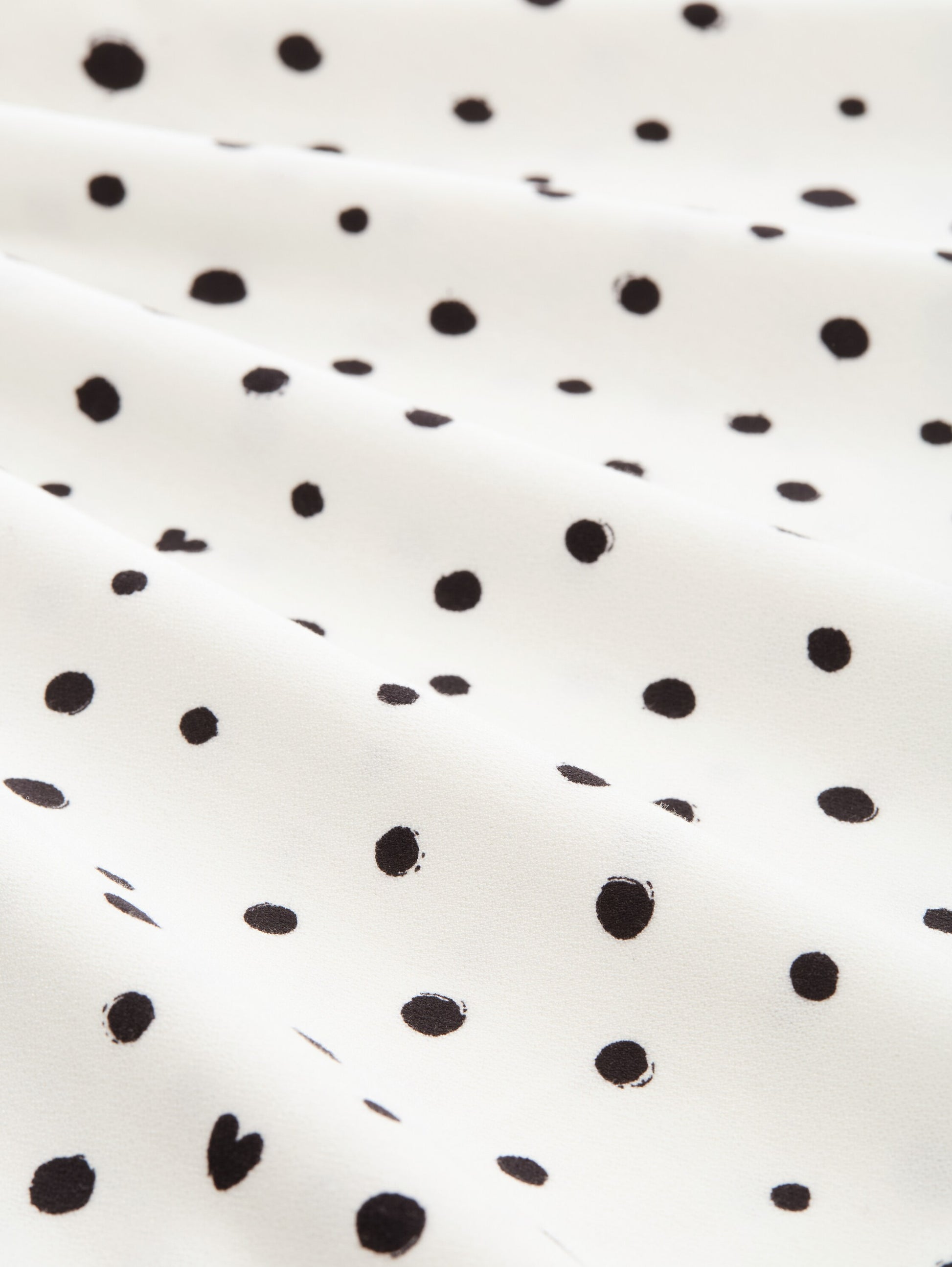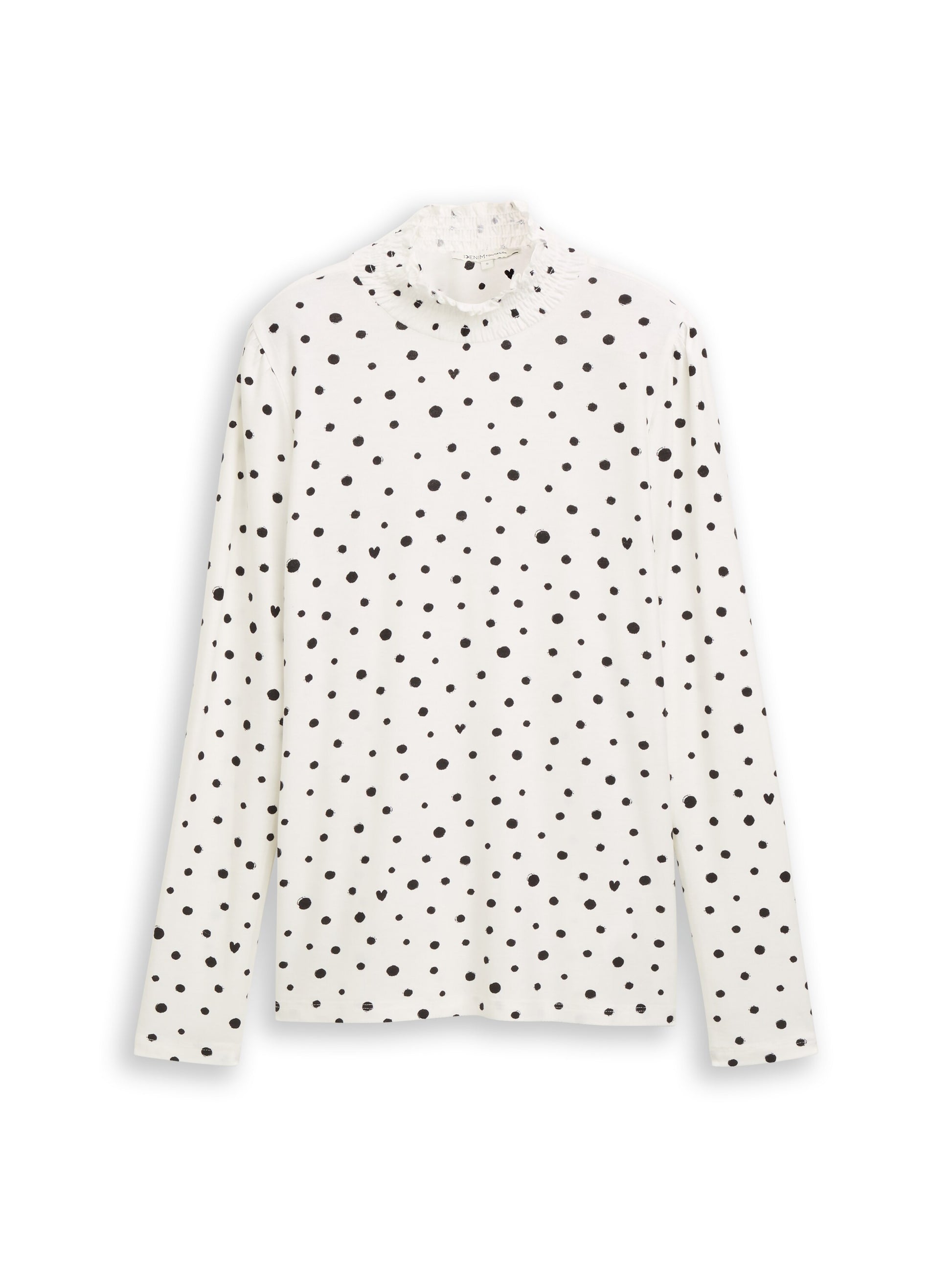 Gemustertes Langarmshirt mit leichten Raffungen an den Schultern und am Stehkragen. Aus einem elastischen, strukturierten Krepp-Material.