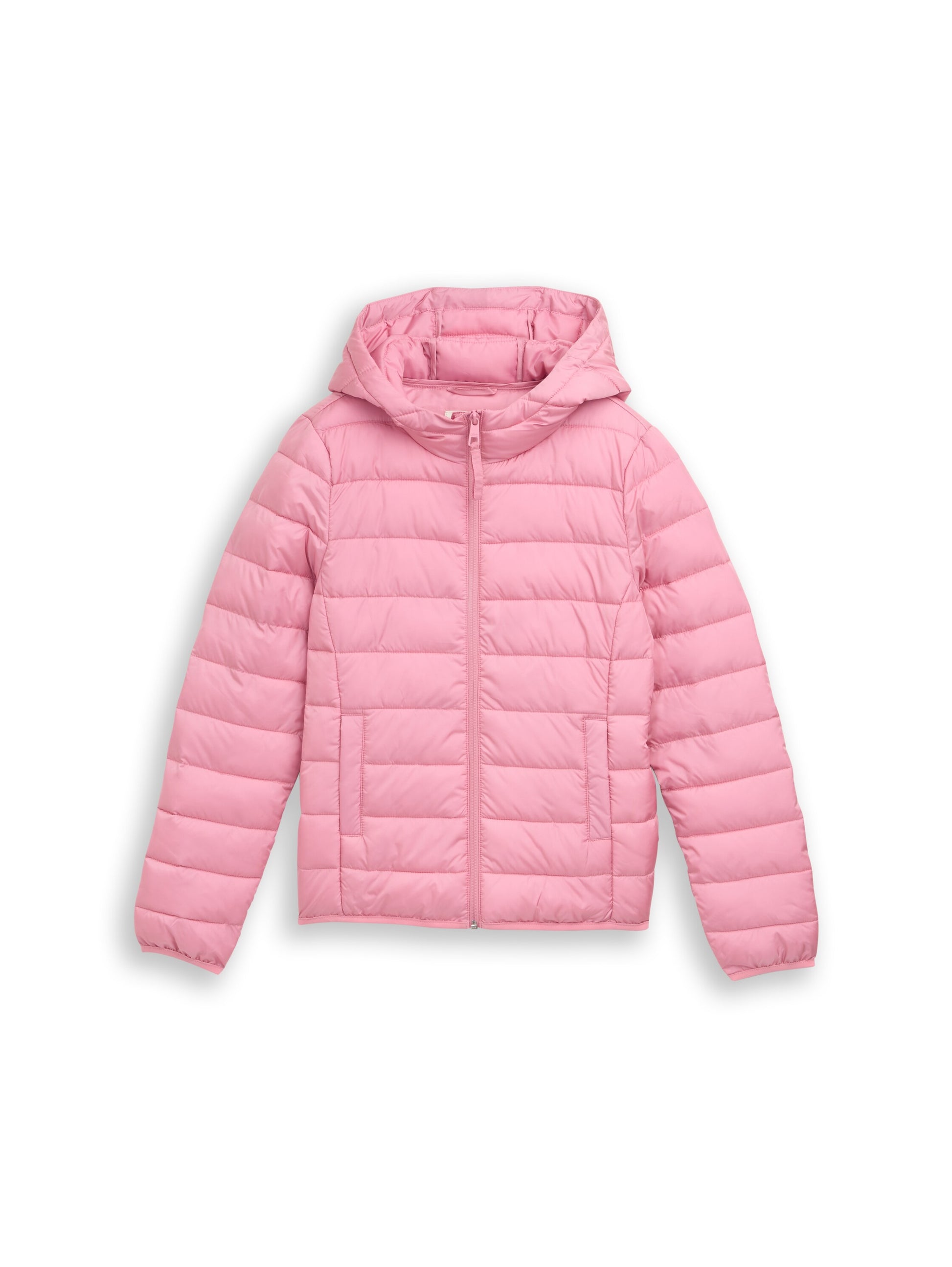 Gesteppte Übergangsjacke mit Kapuze, seitlichen Eingriffstaschen und elastischem Gummibund am Saum