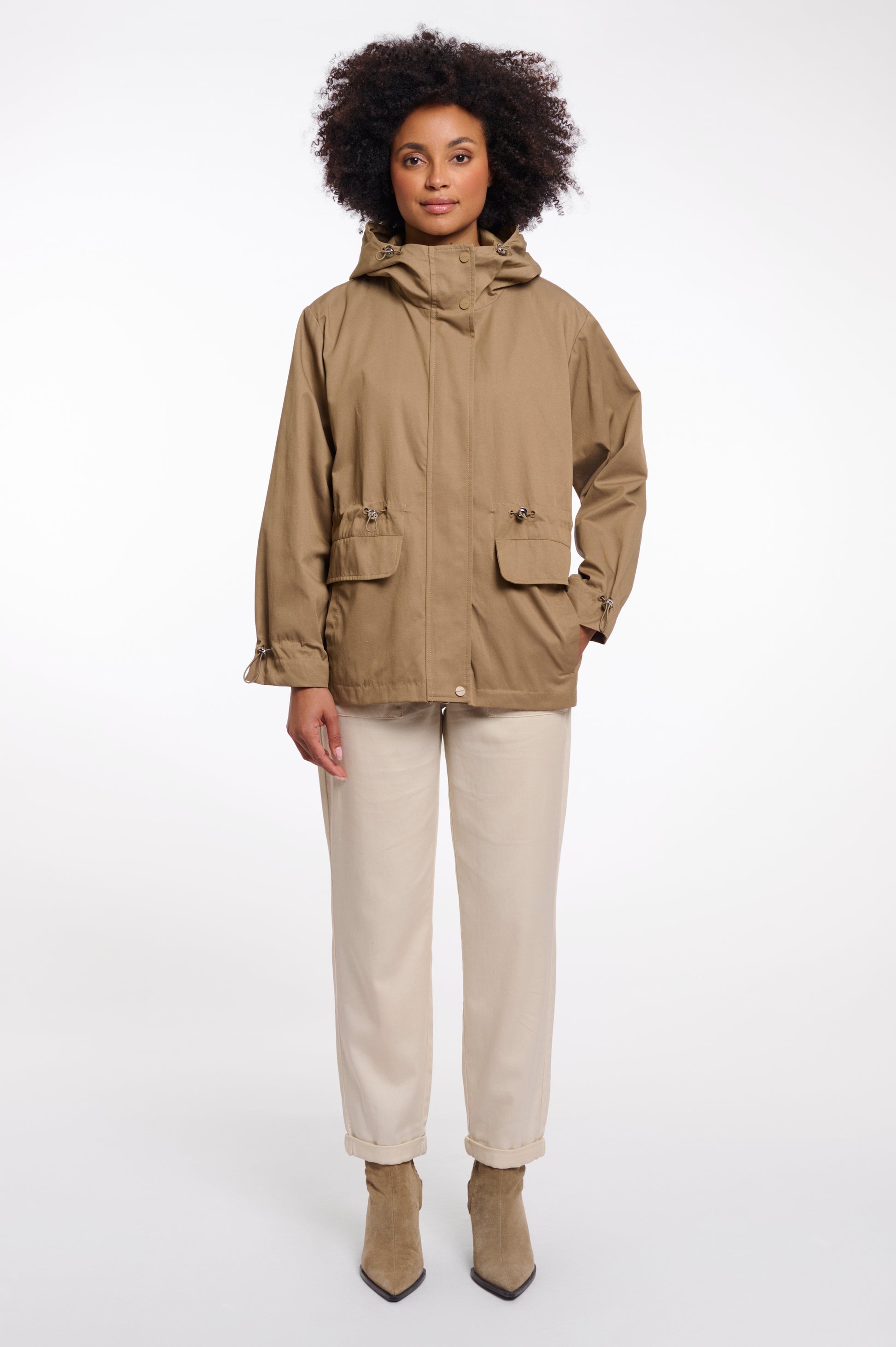 Short parka with hood