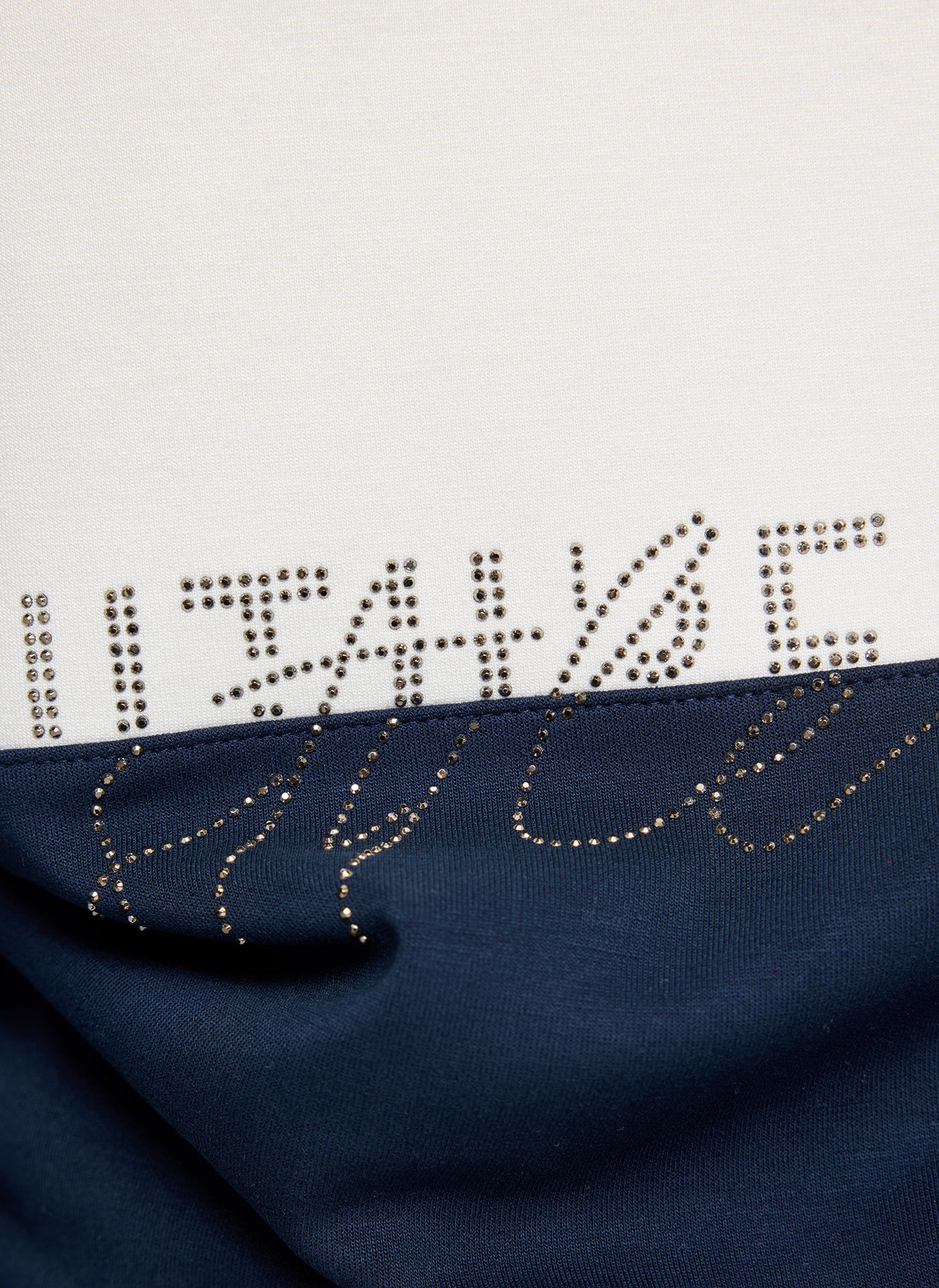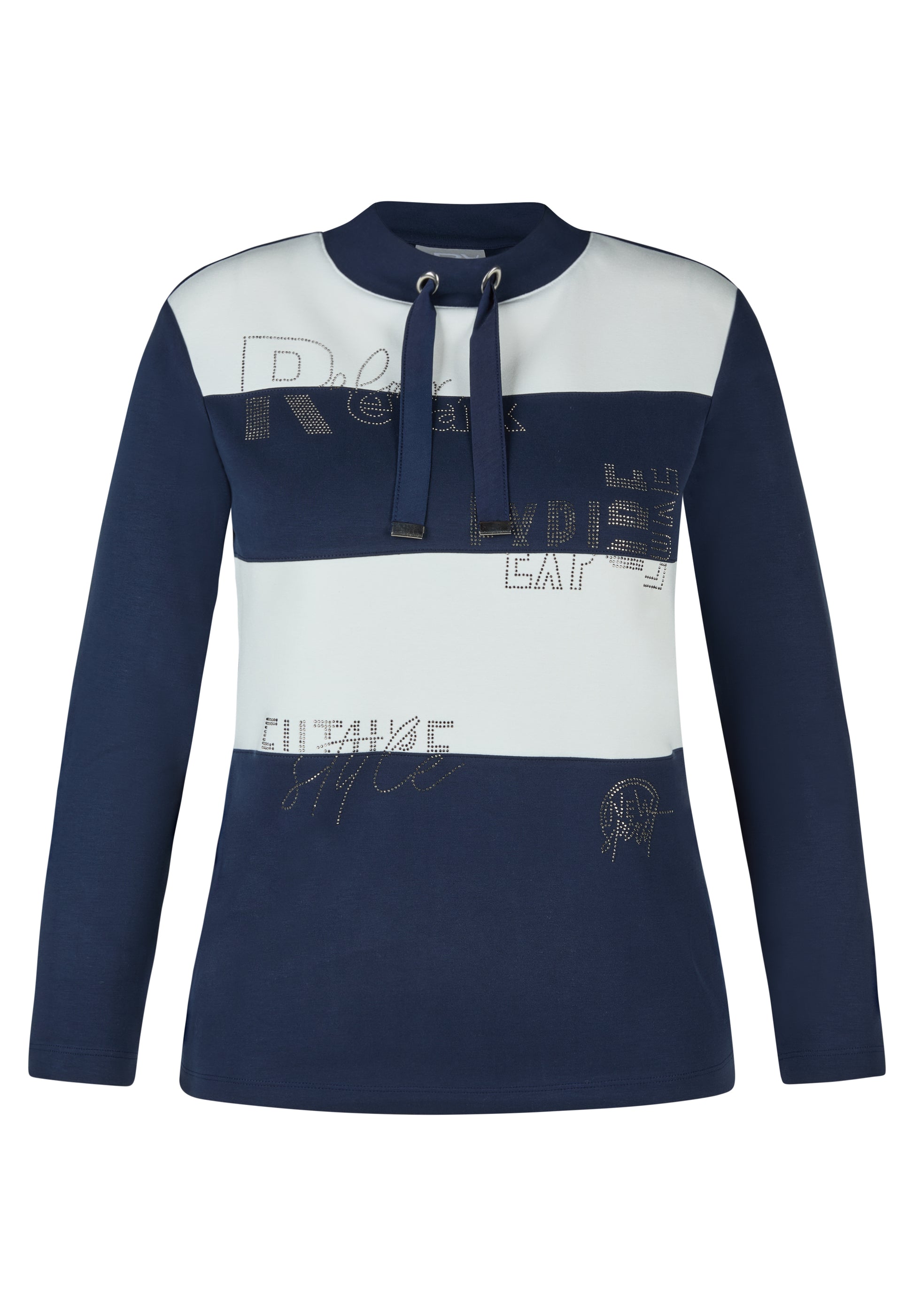 Dieses sportive Sweatshirt überzeugt mit modischem Tunnelzugkragen und breiten Farbblöcken in harmonischem Kontrast. Dezente Strasssteine unterstreichen die Frontdetails und verleihen dem Look eine raffinierte Note. Die weiche Qualität sorgt für angenehmen Tragekomfort _ ideal für lässige Alltags-Outfits. Tunnelzugkragen mit breiten Bändern. Strassdetails auf der Vorderseite. Breite Farbblöcke in Kontrastoptik.