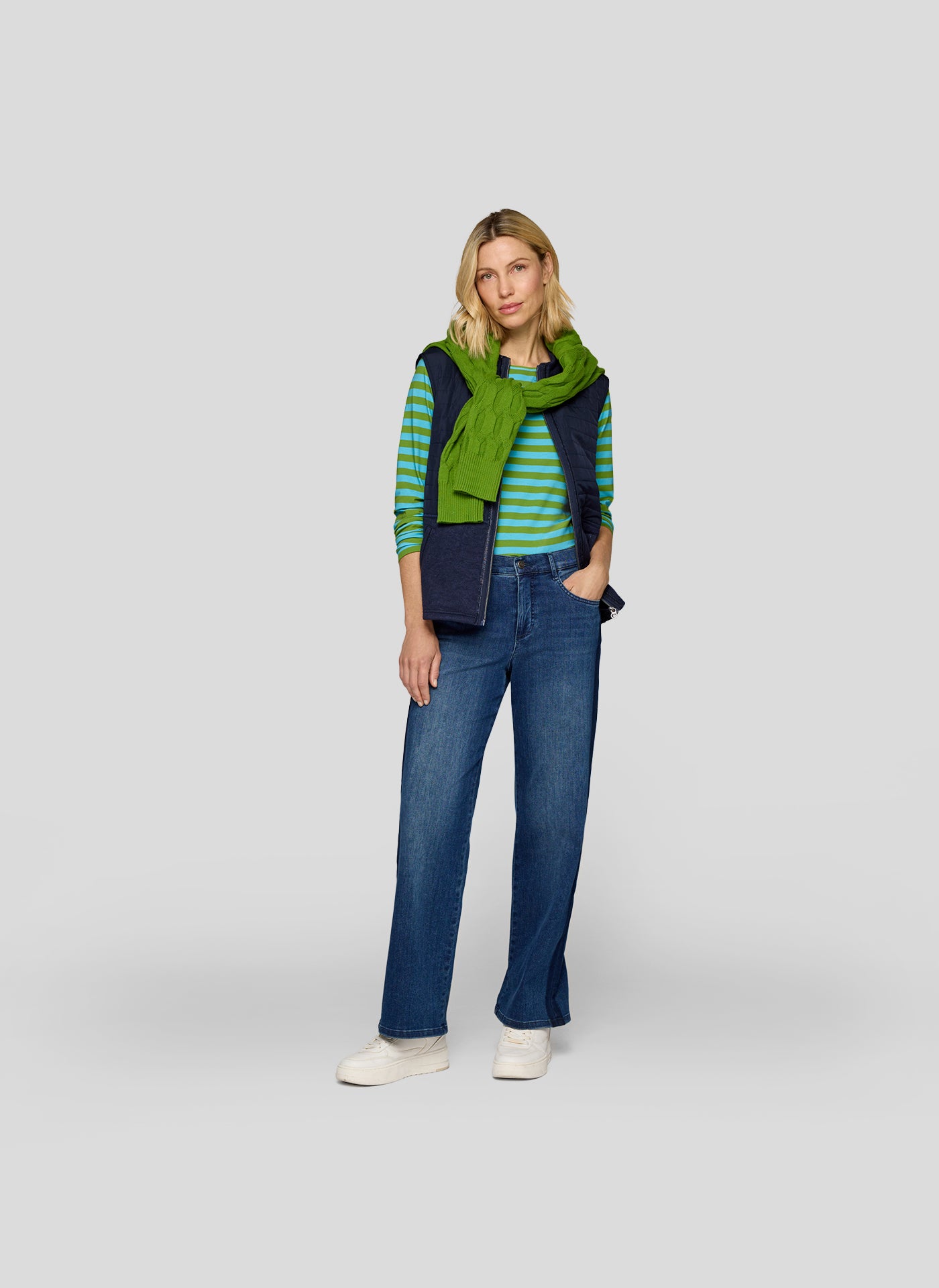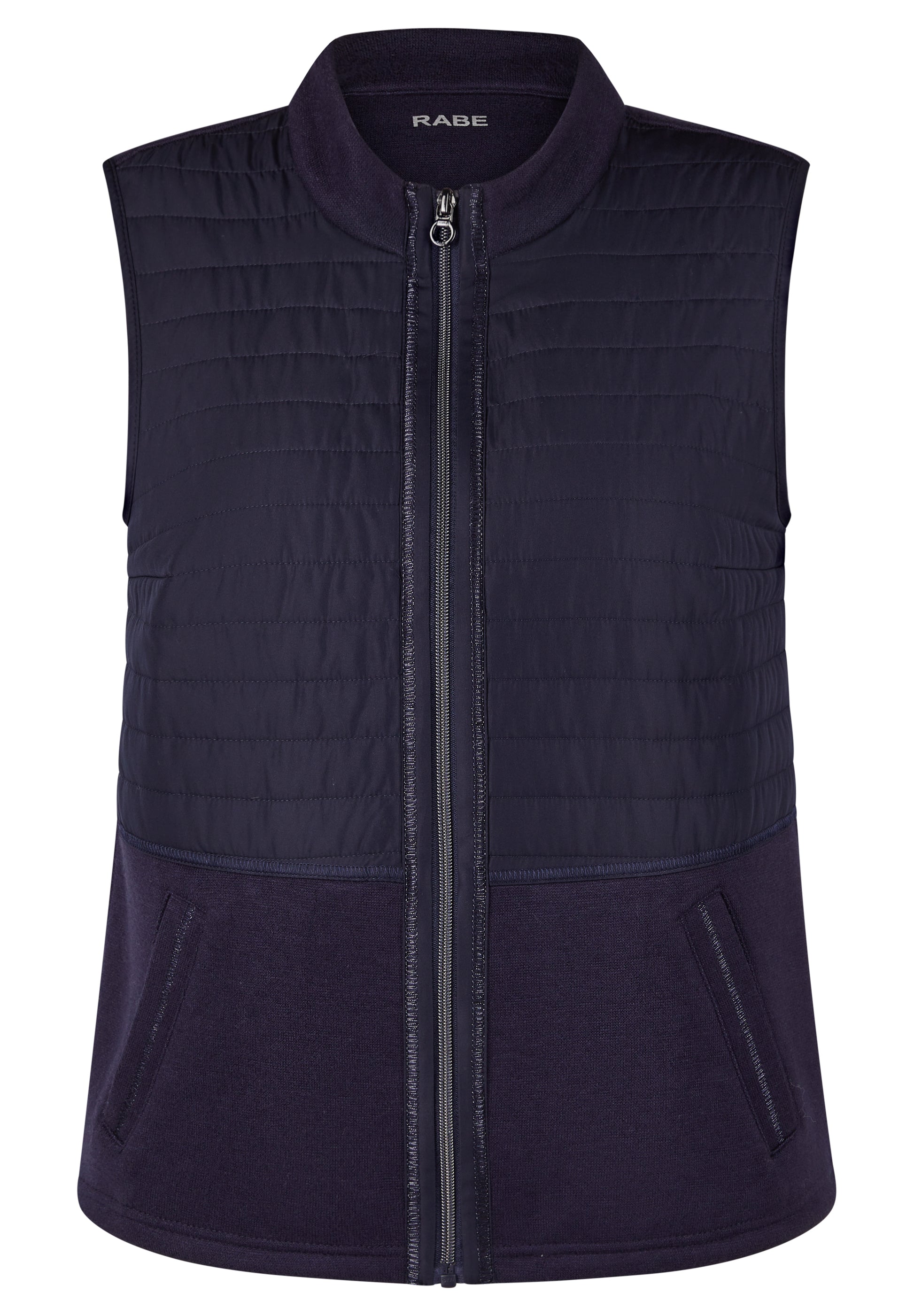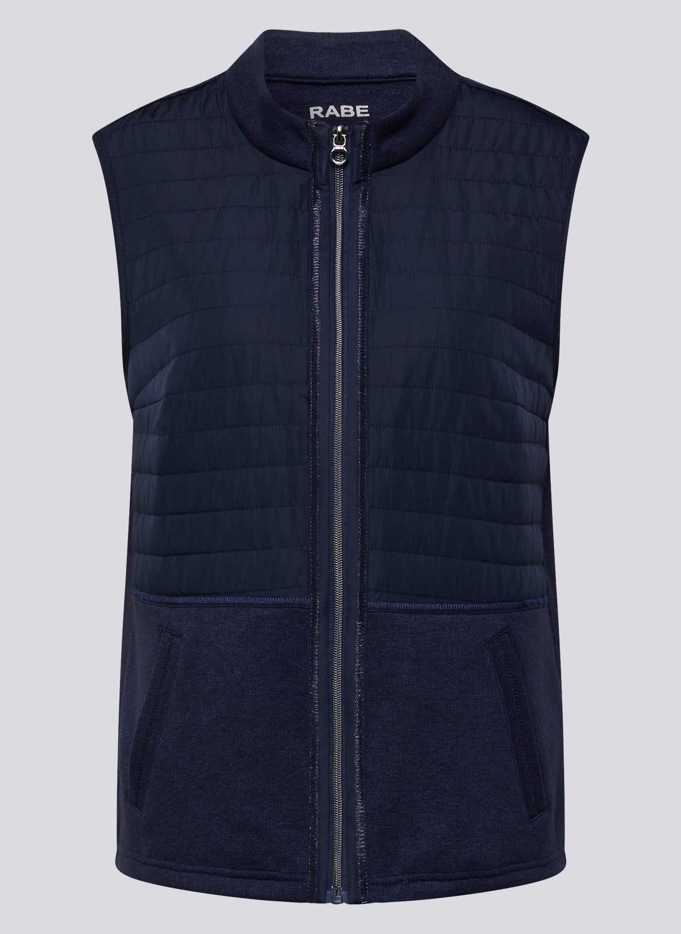 Diese moderne Weste kombiniert einen sportiven Stepp im Brustbereich mit einer weichen Jerseyqualität im unteren Teil. Der hochgeschlossene Rundhalsausschnitt, der durchgehende Reißverschluss sowie die seitlichen Eingrifftaschen machen das Modell zu einem vielseitigen Begleiter für Übergangstage. Die Kombination aus Funktionalität und Komfort sorgt für ein angenehmes Tragegefühl bei gleichzeitig stilvollem Look. Kombinierter Jersey- und Steppmix. Eingrifftaschen seitlich. Ideal für Übergangszeiten.