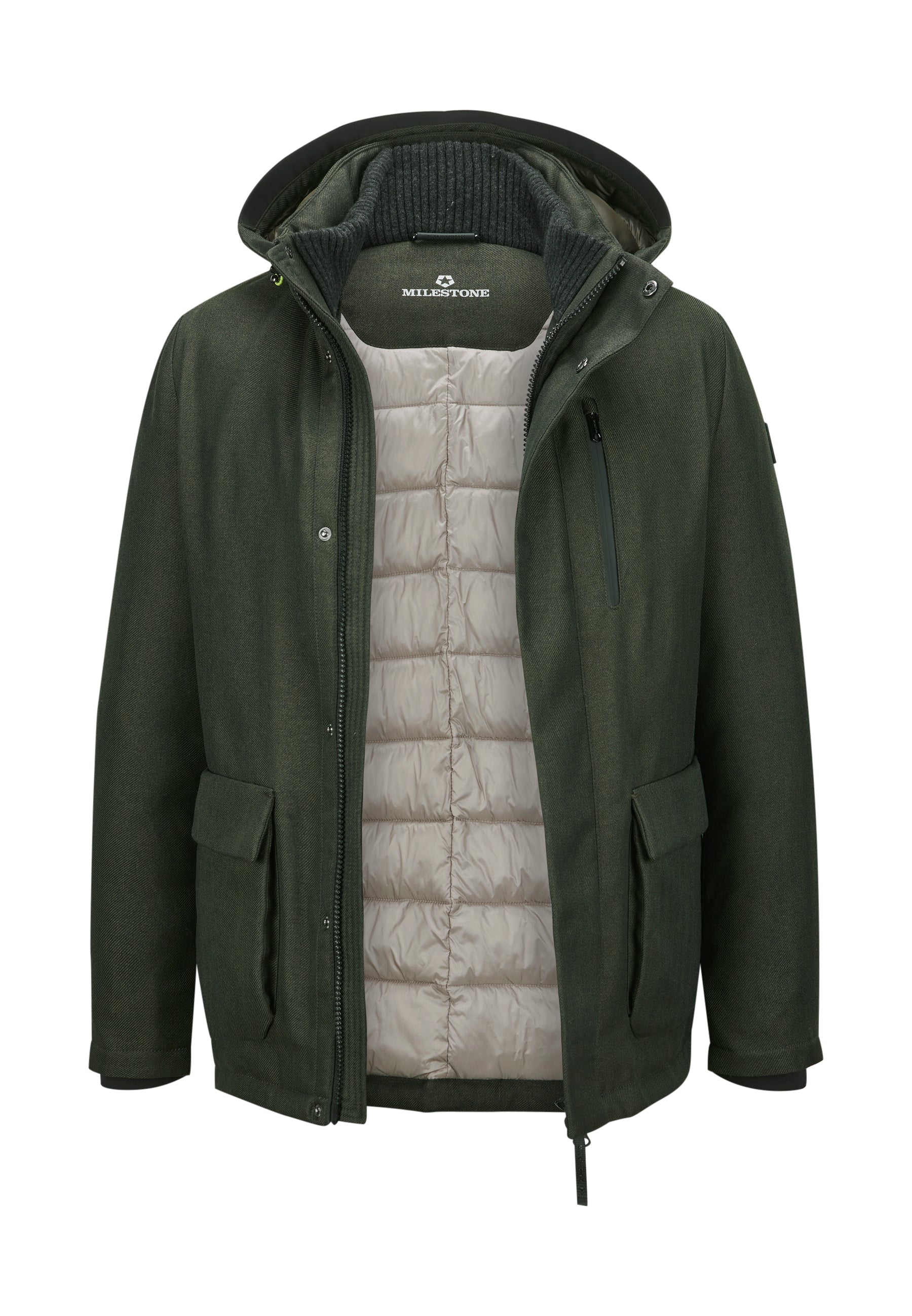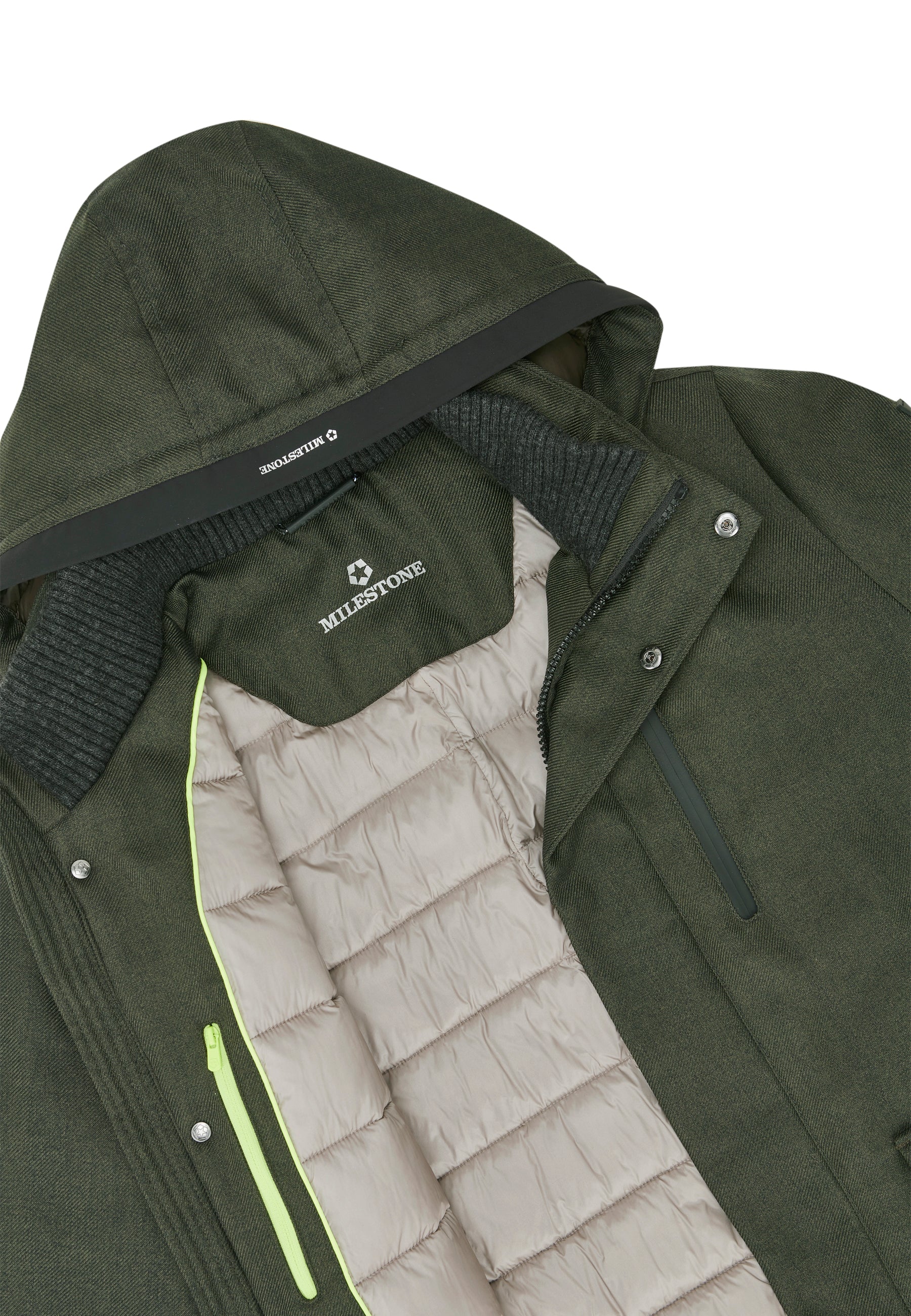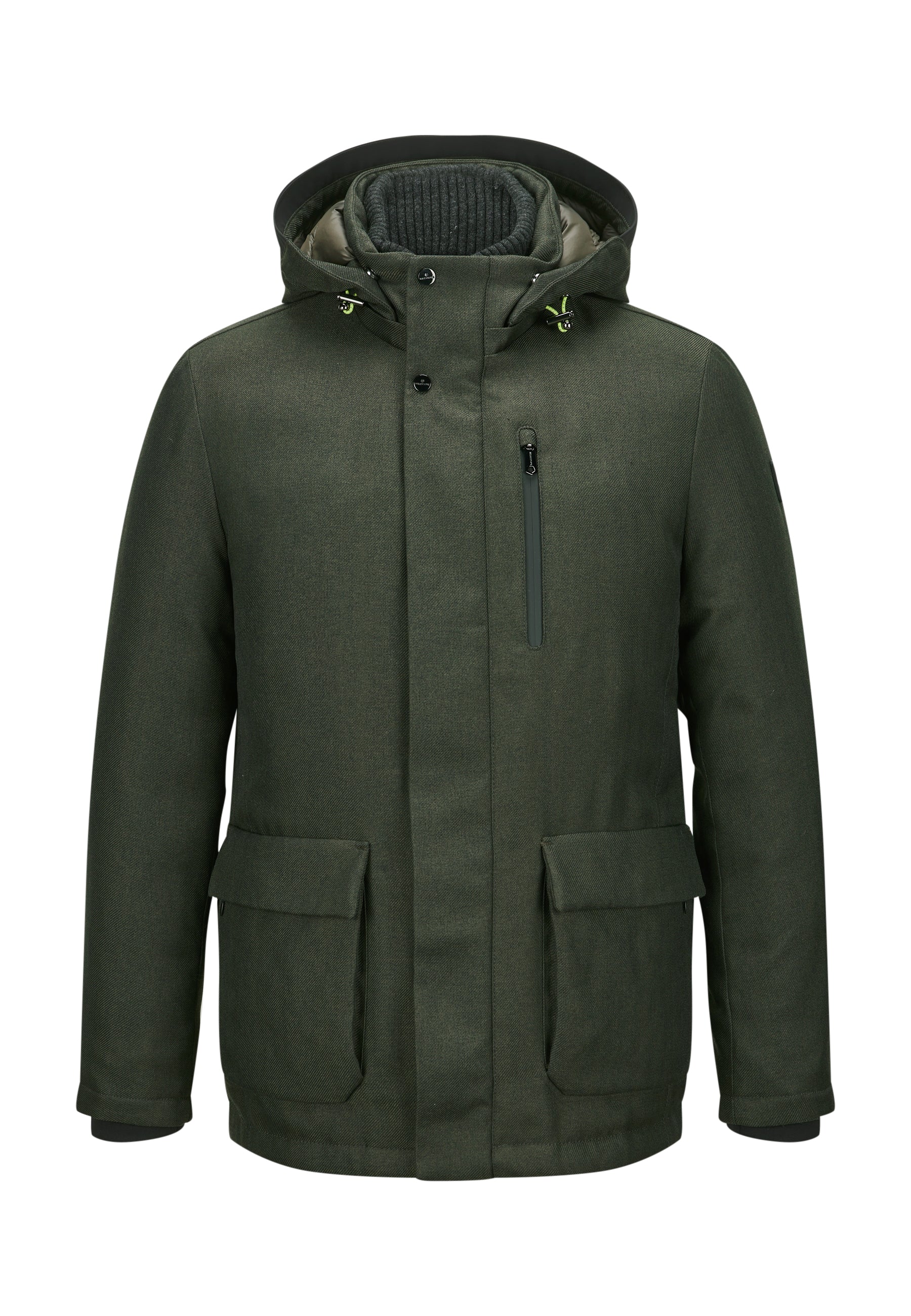 • Oberstoff: Polyester-Twill mit Wolloptik, atmungsaktiv und wasserabweisend