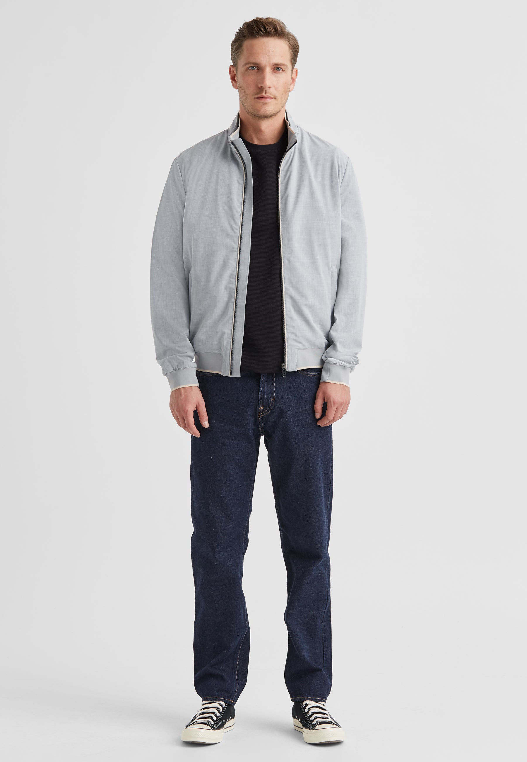 • Hochabschließender Kragen mit Logo-Badge auf Kragenrückseite