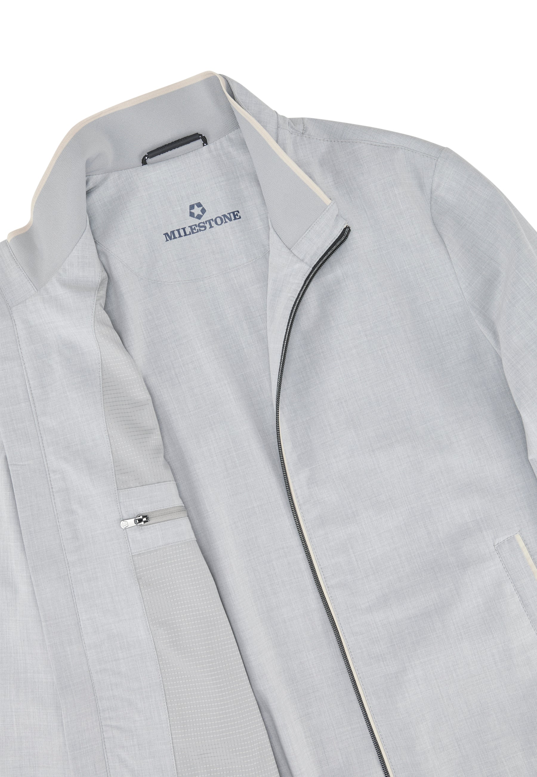 • Kontrast aus Microvelours an Taschen und Paspeln an Front Reißverschluss