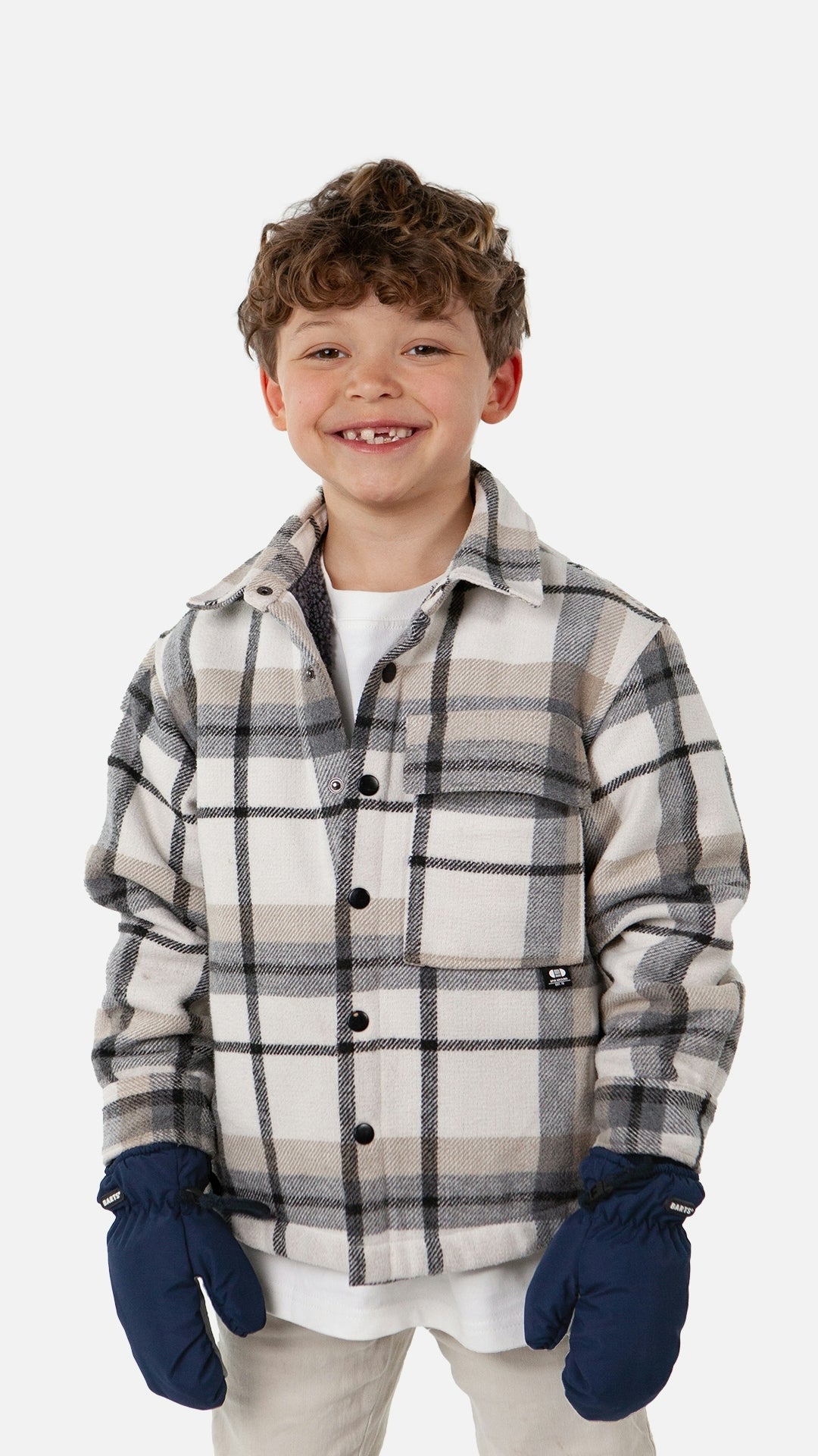 Kinder-Skifäustlinge mit Strickbündchen - Wasserabweisendes Material, um Ihre Hände trocken zu halten - Isolierung aus 70% recyceltem Polyester reguliert die Wärme - Die Fäustlinge haben ein weiches Bemberg-Futter und eine PU-Handfläche für Griffigkeit - Ausgestattet mit einer Dont Lose m Schnur - Größe 1 hat kein separates Daumenstück