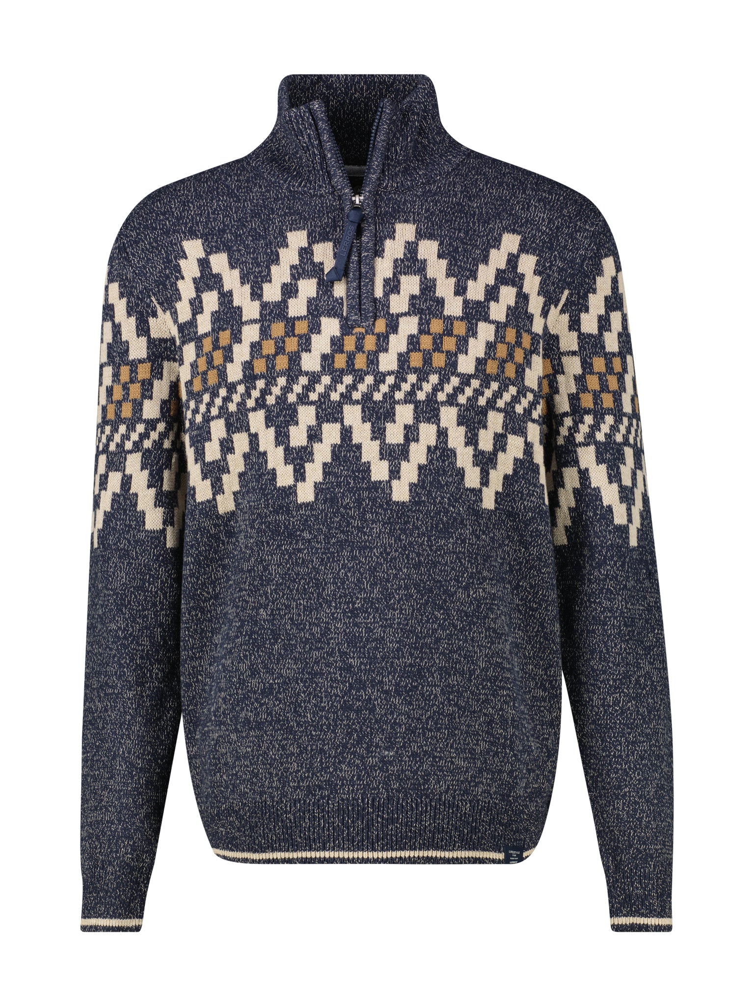 Der LERROS Jacquard-Strickpullover überzeugt durch sein grafisch gestaltetes Norwergermuster und den funktionalen Troyerkragen. Der edle Look wird durch die hochwertige Materialqualität ergänzt, die für angenehme Wärme und Tragekomfort sorgt. Der Troyerkragen lässt sich je nach Bedarf hoch- oder runterklappen und schützt vor kühlerem Wetter. Ideal für den Übergang zwischen den Jahreszeiten oder als zusätzliches Layer in kälteren Monaten.