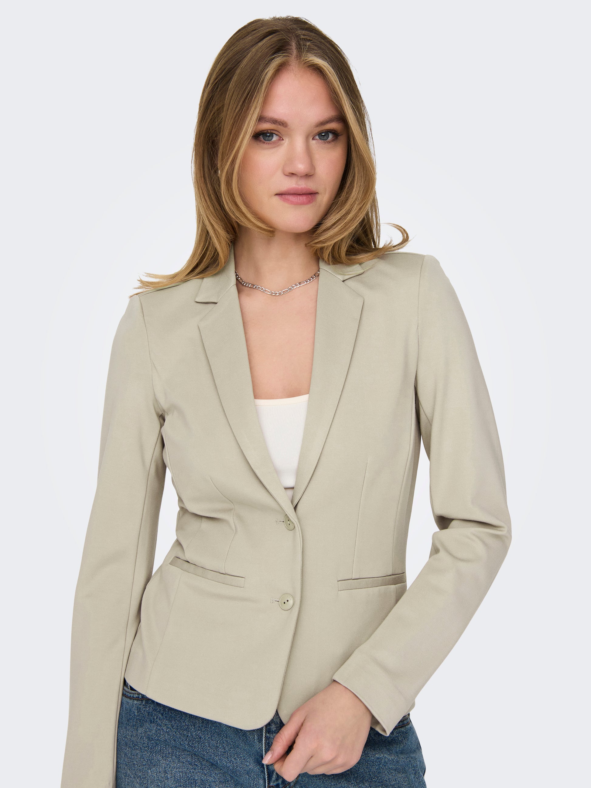 Werte deinen Look mit einem zeitlosen Blazer auf: Trage ihn zu deiner Lieblingsjeans oder vervollständige deinen Party-Look. - Produkttyp : Blazer - Hals : Steigendes Revers - Verschluss : Knopfleiste - Taschen : Taschen vorn - Passform : Normal geschnitten