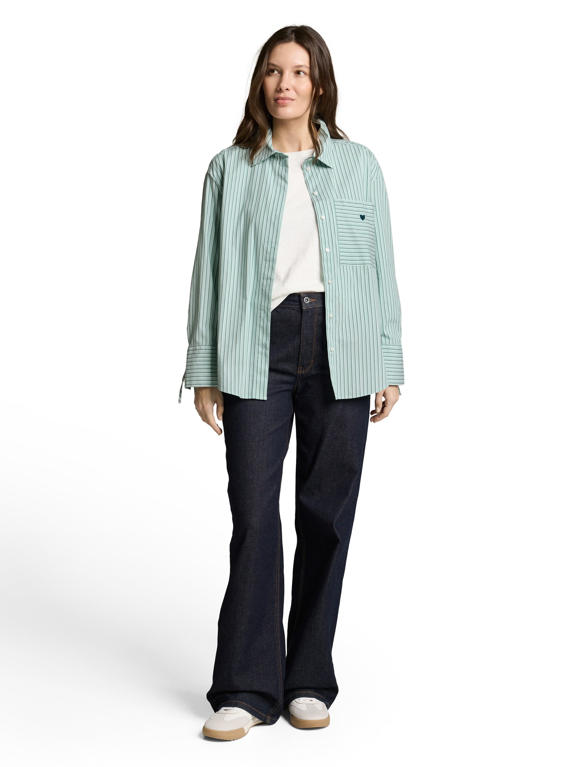 Oversize Hemdbluse mit Herz-Stickerei