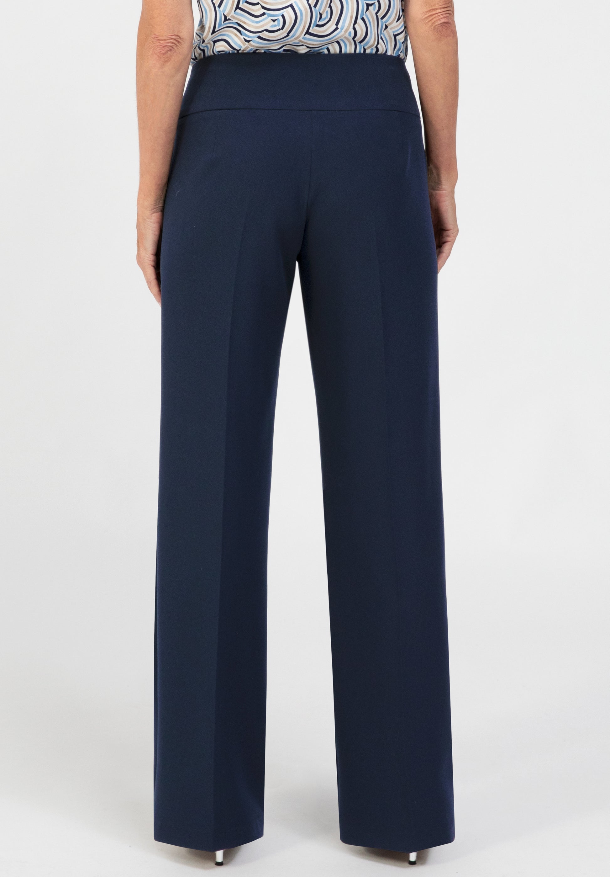 Schick und modern - unsere neue Anzughose Parigi überzeugt mit ihrem cleanen Look und edler Verarbeitung. Der breite Formbund mit Haken- und Ösenverschluss sowie die feine Billettasche unterstreichen den eleganten Stil. Die gerade, weite Silhouette mit Bügelbruch sorgt für einen klassischen Auftritt. Gefertigt aus einem hochwertigen, pflegeleichten Materialmix mit Elasthan bietet Parigi besten Tragekomfort. Perfekt kombinierbar mit dem Blazer Edith für einen souveränen Business-Look.