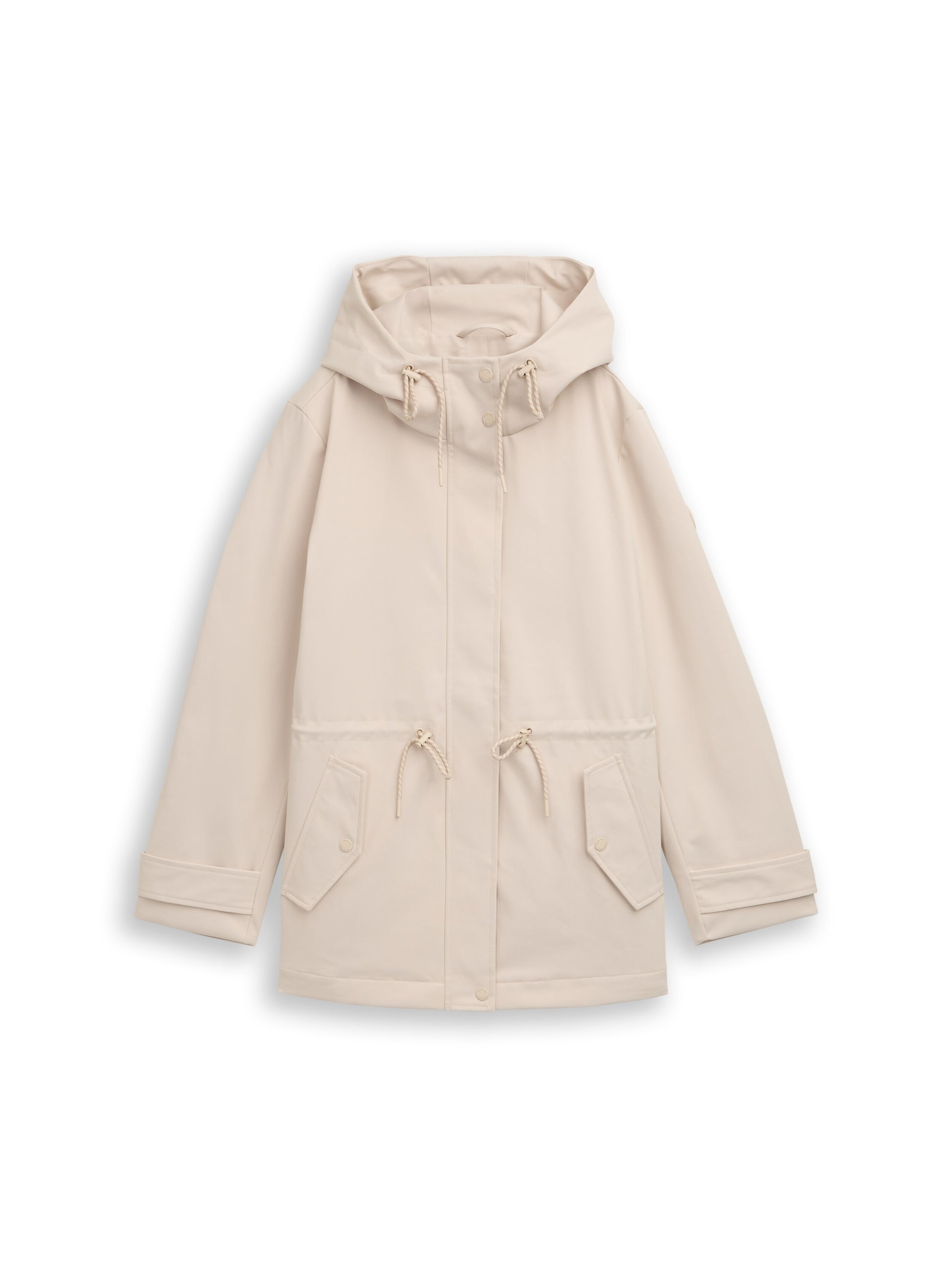 Wasserabweisender Parka mit Reißverschluss und Druckknopfleiste. Mit verstellbarem Kordelzug an der Kapuze und an der Taille. Mit Pattentaschen mit Druckknopf auf der Vorderseite und Logo-Badge am oberen Ärmel.