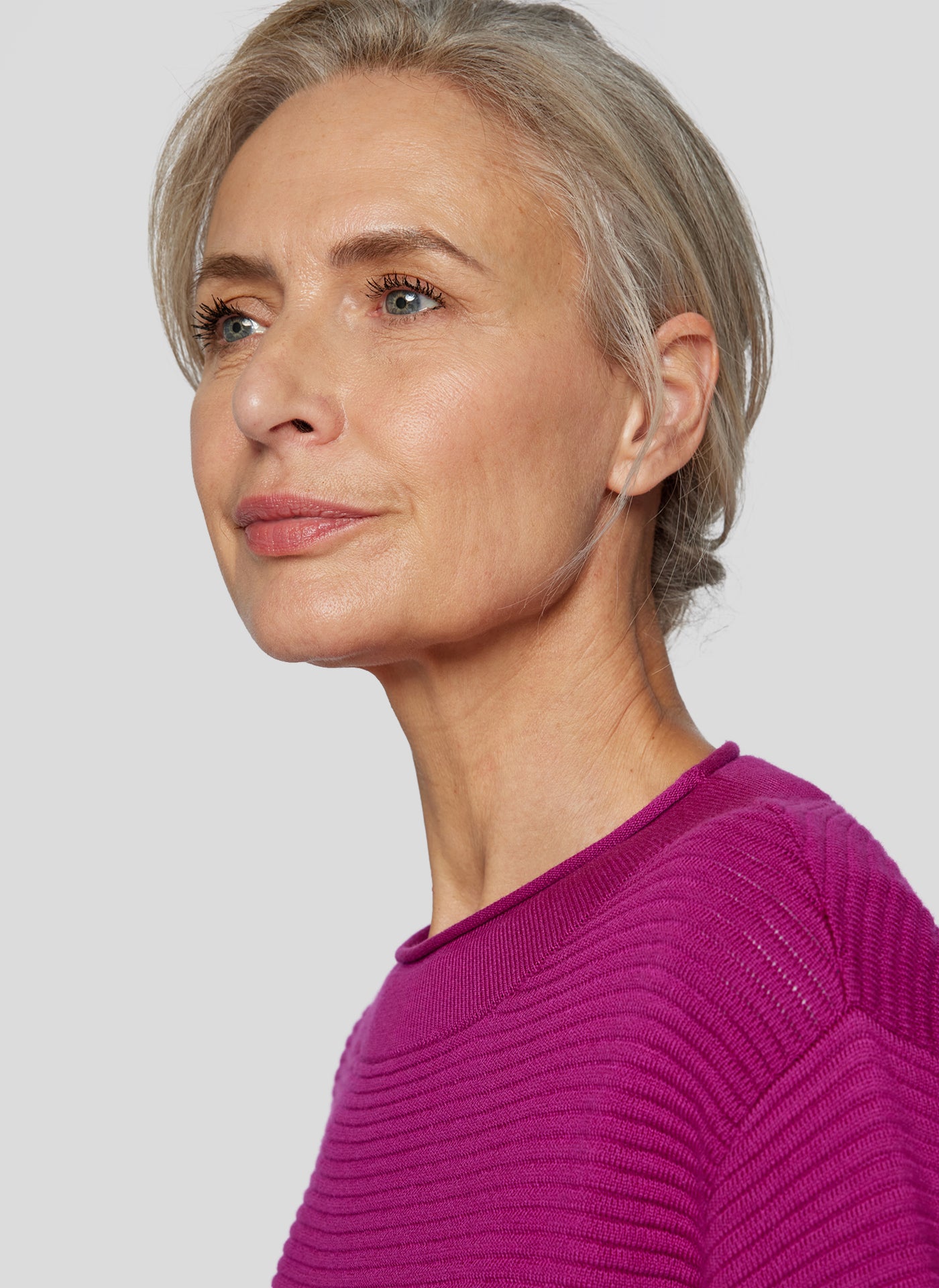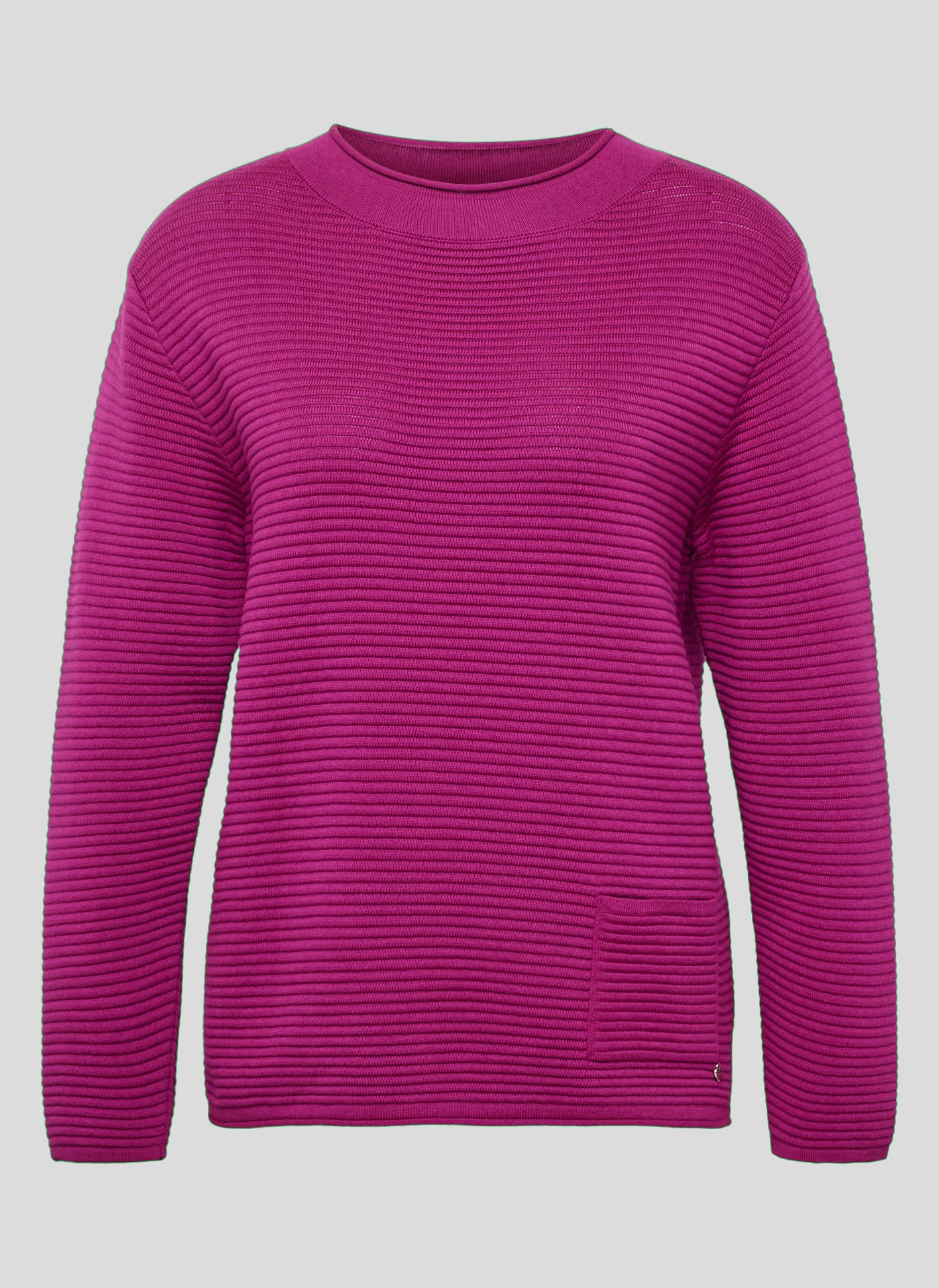 Der alltagstaugliche Strickpullover aus 50 % Baumwolle und 50 % Polyacryl überzeugt durch seinen geraden Schnitt und die stilvollen, langen Ärmel. Mit einem ansprechenden Stehkragen bietet er nicht nur Wärme, sondern auch eine zeitlose Eleganz. Die unifarbenen Varianten in lebhaftem Pink und sanftem Hellblau machen ihn vielseitig kombinierbar. Praktische Details wie die aufgesetzte Tasche und die kurzen Seitenschlitze im Bund runden das Design ab und verleihen diesem Pullover einen modernen Touch, der ihn zu einem unverzichtbaren Kleidungsstück in Ihrer Garderobe macht.